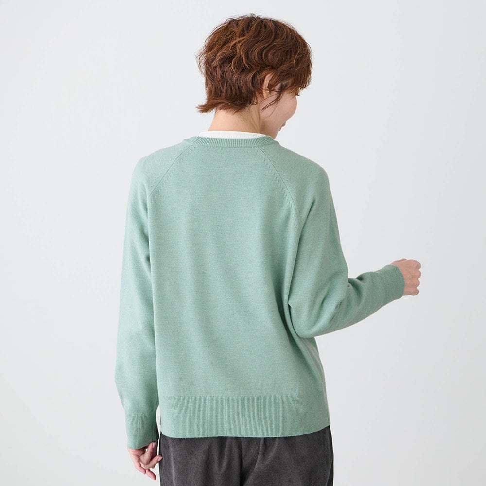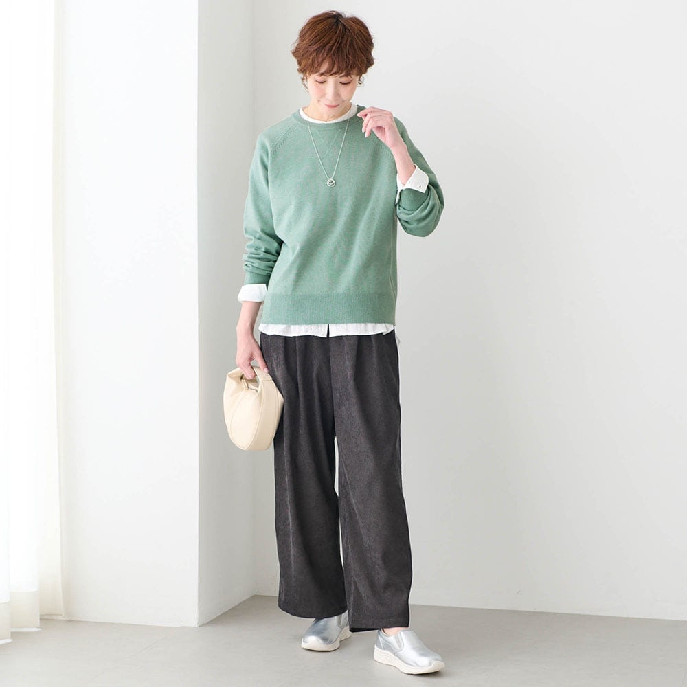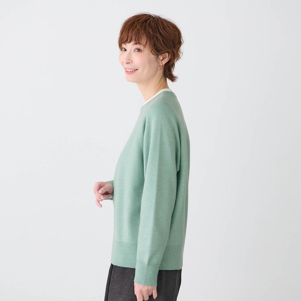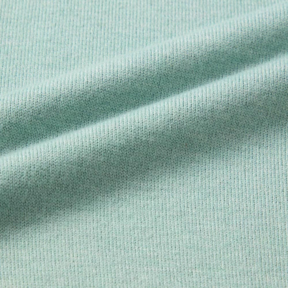 杢ミントの色味に惹かれて購入しました。写真通りのやさしい色で、コーデの差し色として使いやすいです。サイズはLを選びましたが、実際に試着すると自分には少し大きめでした。本当はMサイズに交換したかったものの在庫がなく、そのまま着ることにしました。