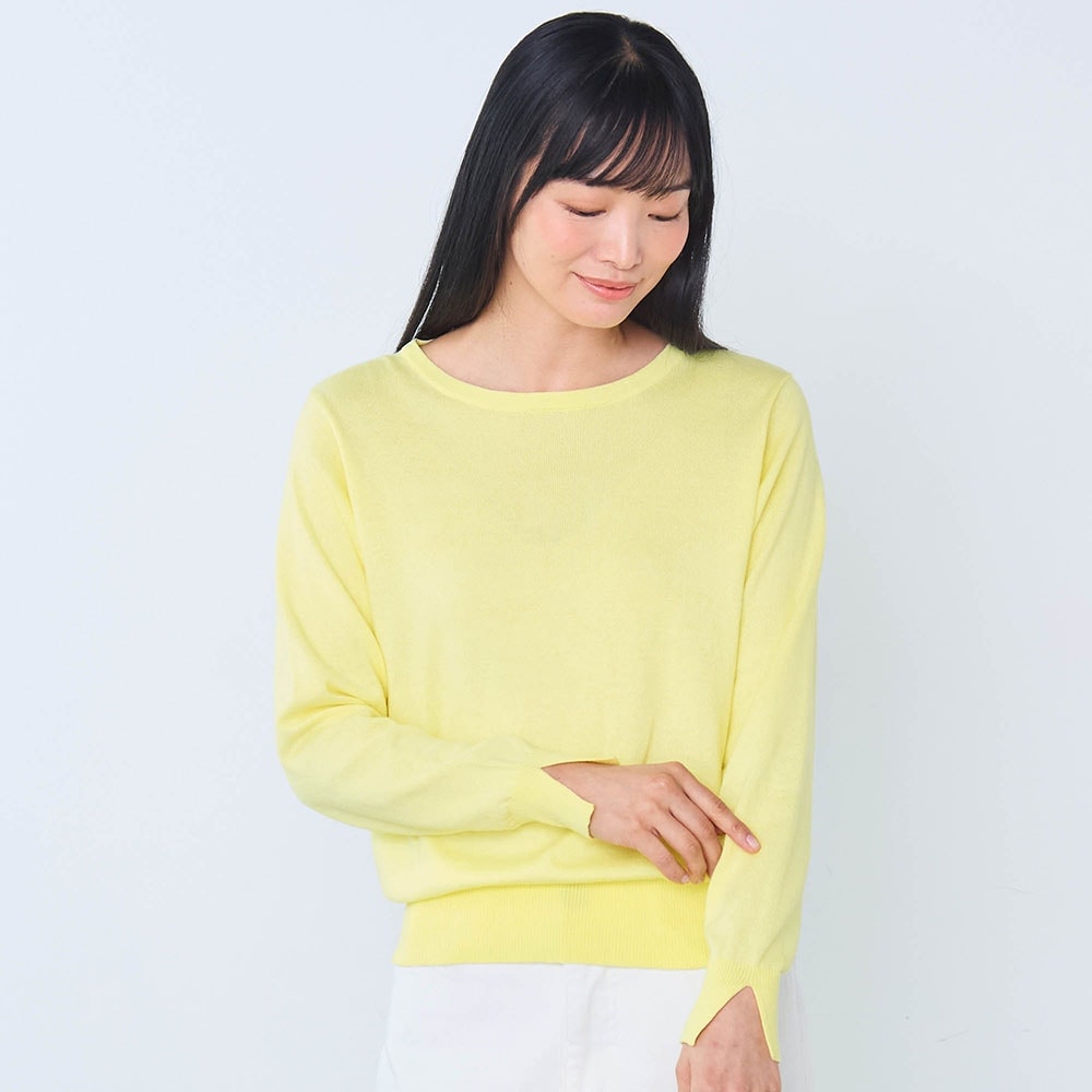 アンサンブルとして着たいと思い、同色のカーディガンと一緒に購入しました。個人的には袖口のカットのデザインはない方がいいと感じています。アンサンブルで着用する際は隠れるので問題ありませんが、単独で着る時は他の方もレビューに書かれていたように折り返して着ています。着心地はサラッとしていてとても気持ち良くて快適です。