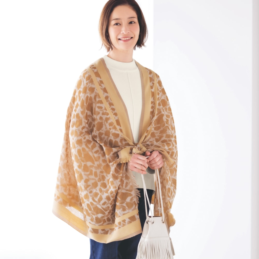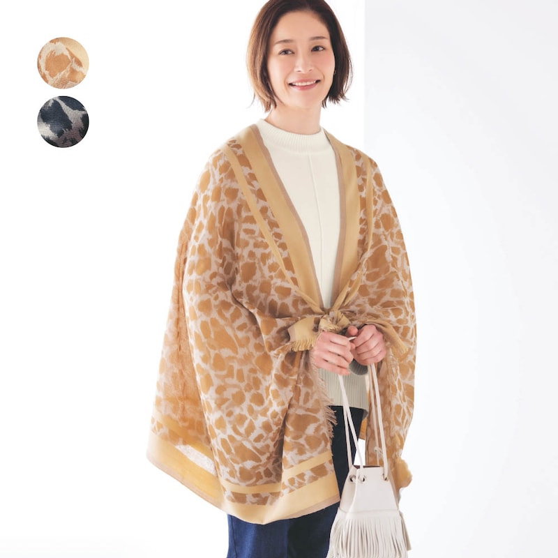 ライン入りレオパード柄ジャカードストール