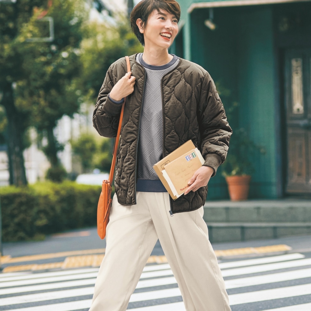 軽めのコーデュロイ素材で着ぶくれせず上品に着こなせる