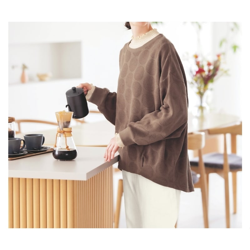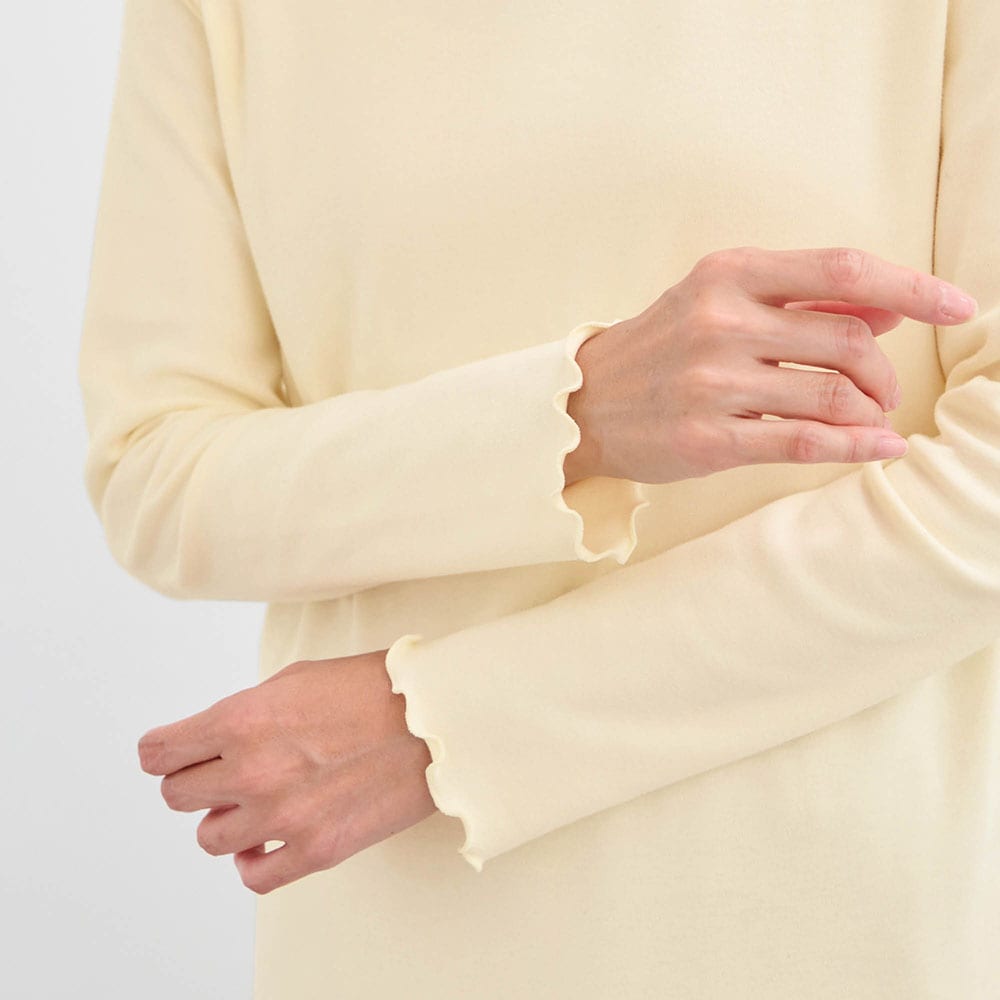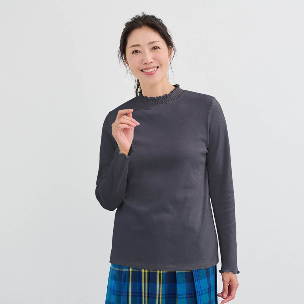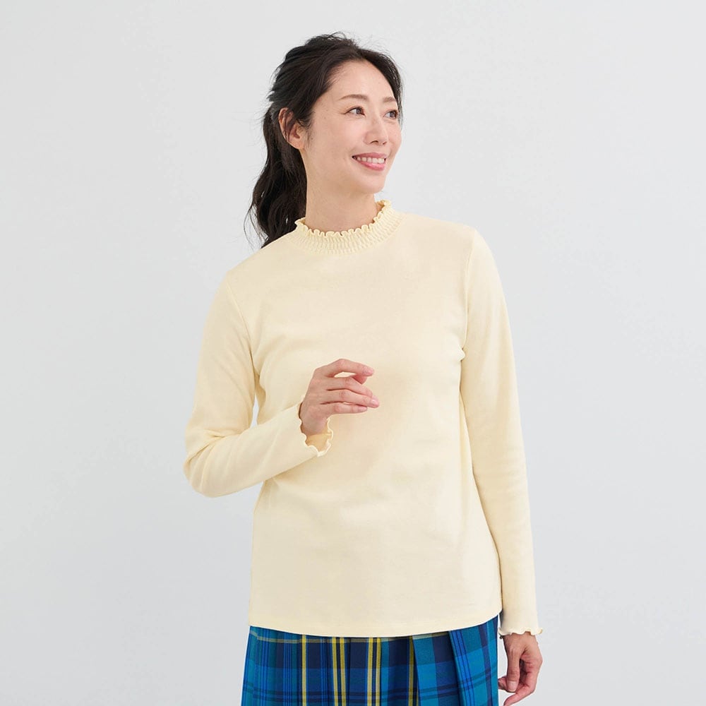 重ねたときに見えても可愛い首元のシャーリングデザイン