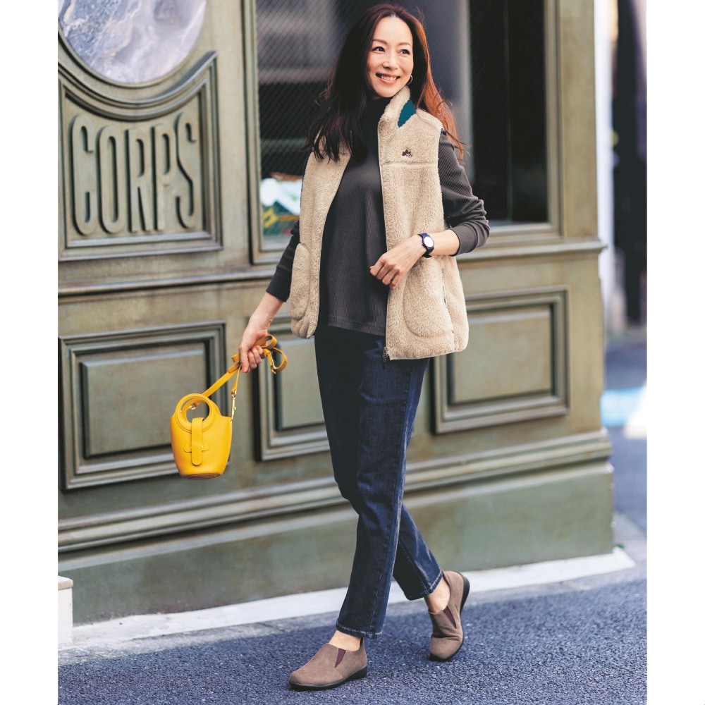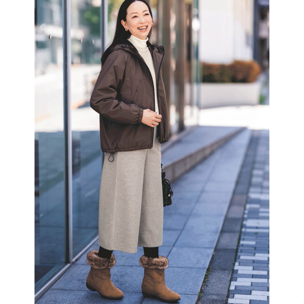 一緒に購入した「綿混あったかサイドファスナーダンボールプルオーバー」の相棒にと思いましたが、とくにサイドスリットが思っていた以上に良く合いました。