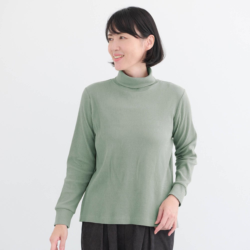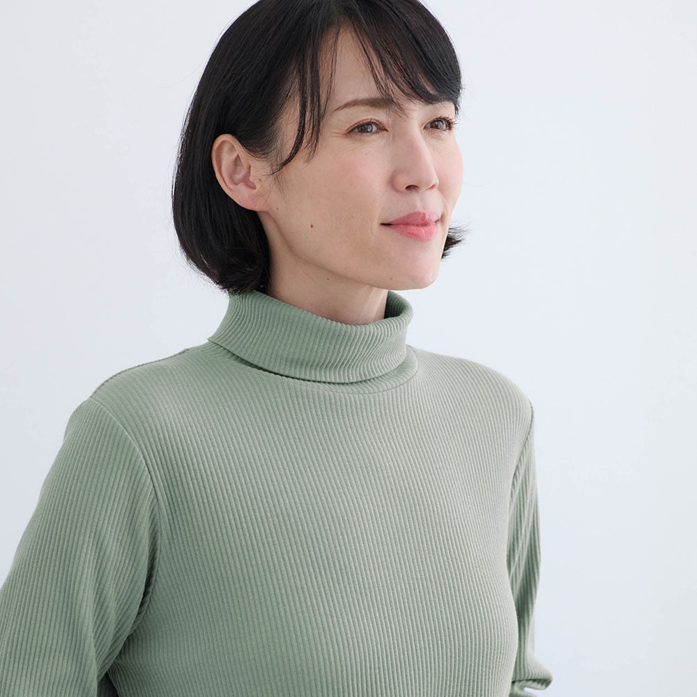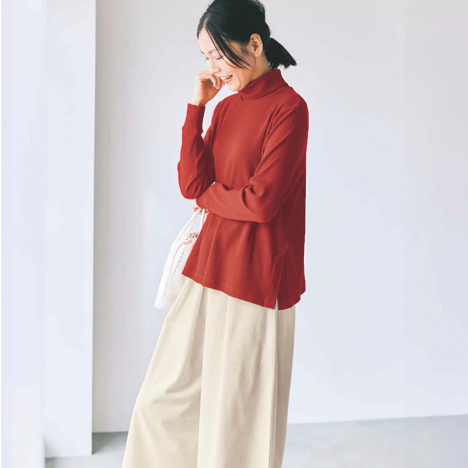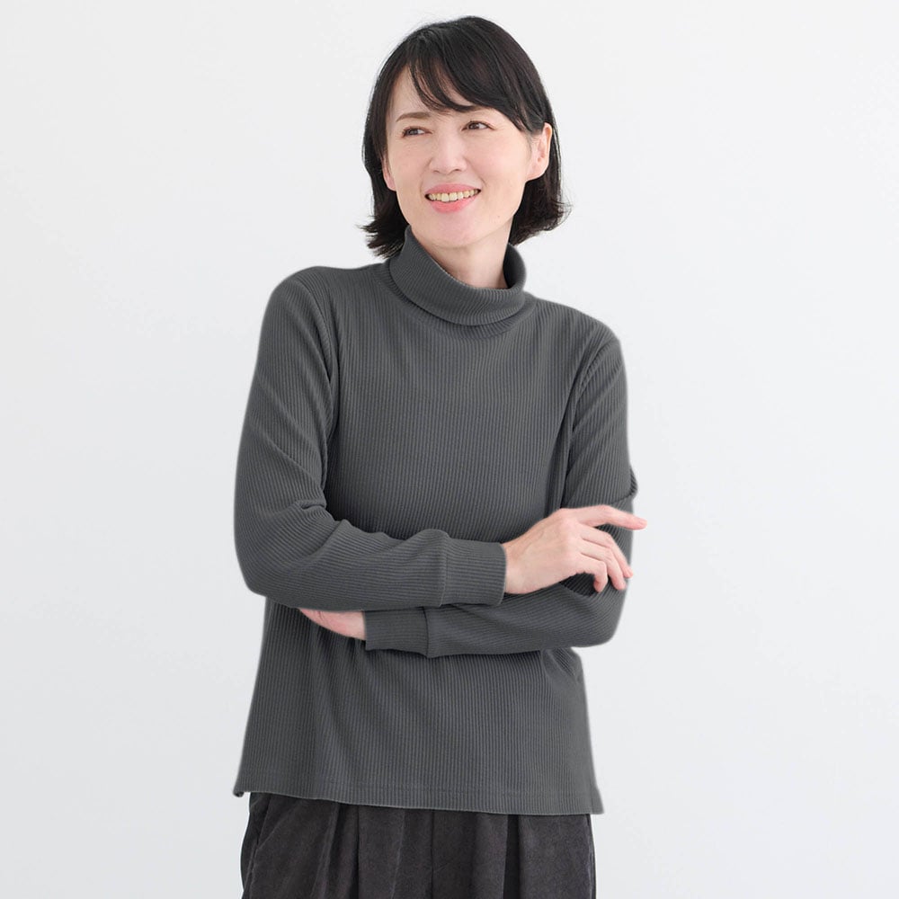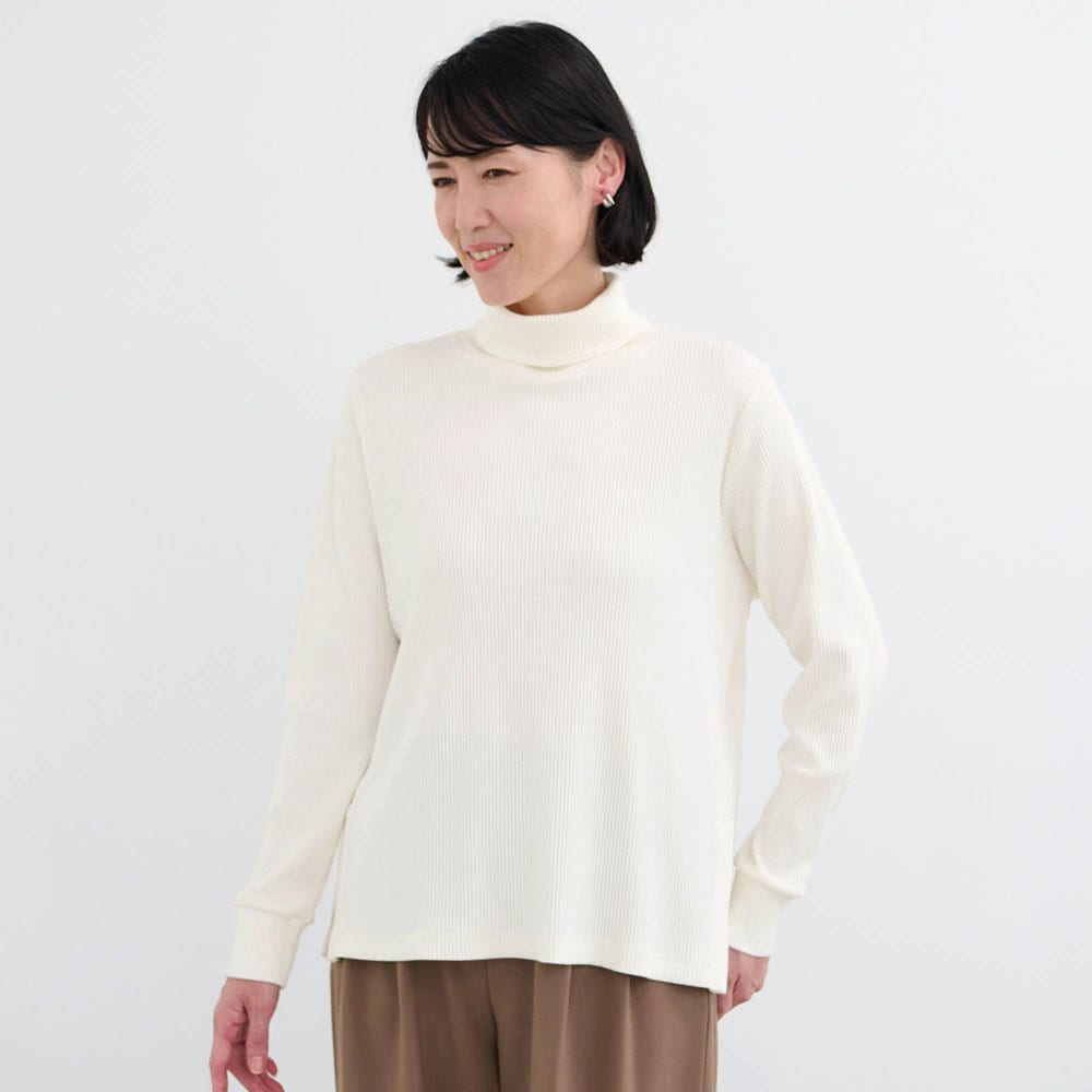 モコモコしていないのに暖かくて着心地が良いです。リブは体の線を拾ってしまうことが多いのですが、こちらは目立たないです。でも一枚で着るならある程度インナーに気を使った方が綺麗に見えると思います(自戒を込めて)