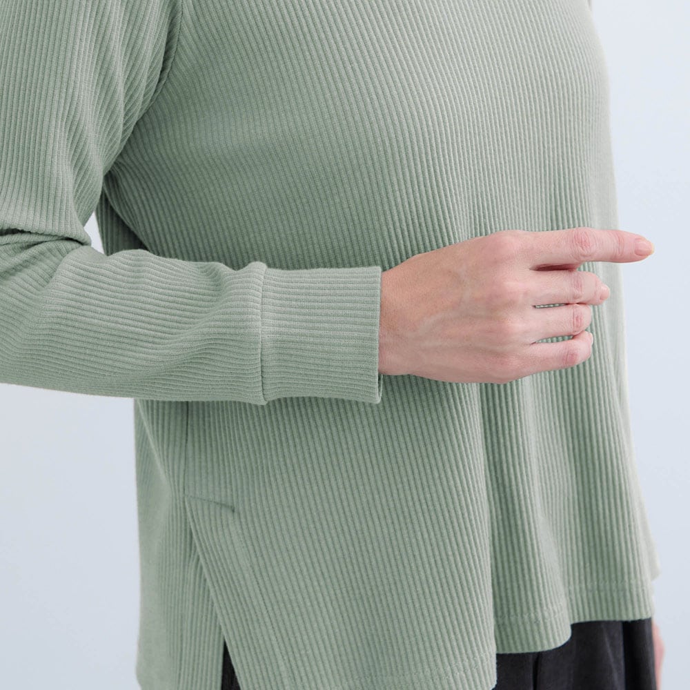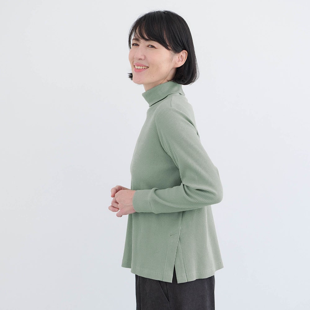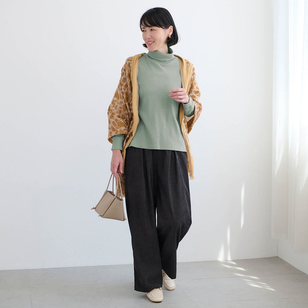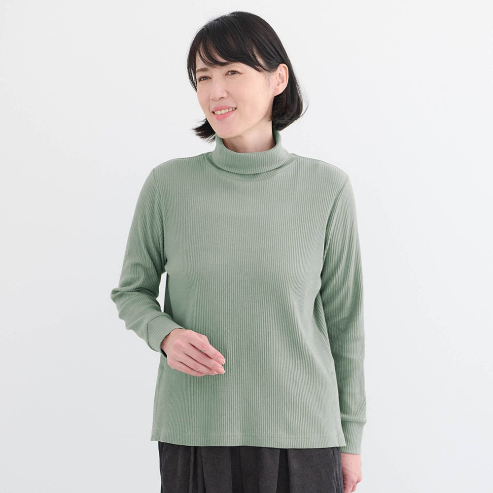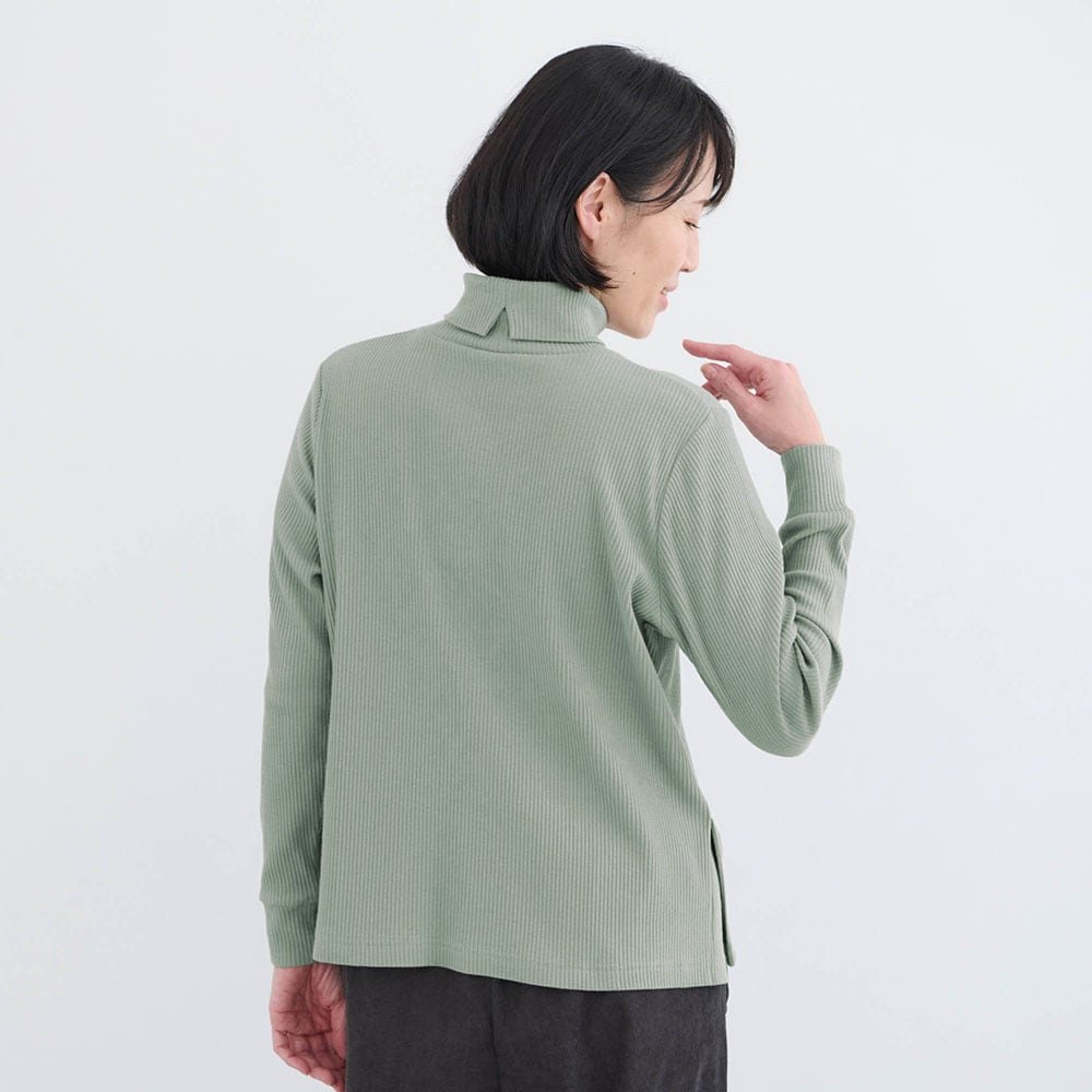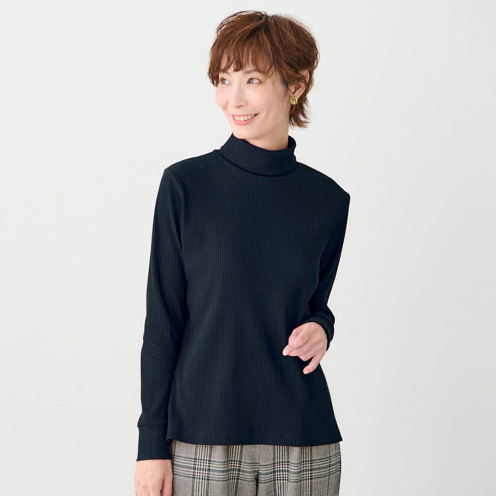 モコモコしていないのに暖かくて着心地が良いです。リブは体の線を拾ってしまうことが多いのですが、こちらは目立たないです。でも一枚で着るならある程度インナーに気を使った方が綺麗に見えると思います(自戒を込めて)