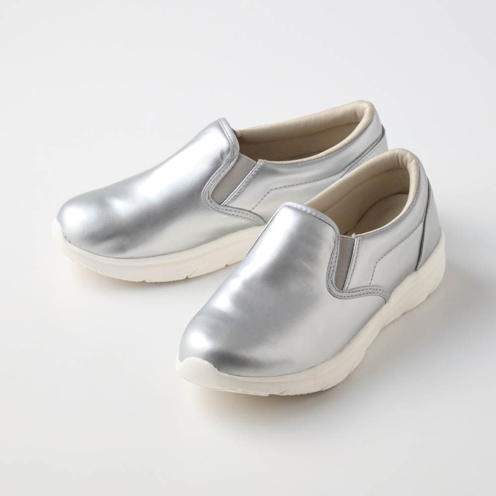 ずっとシルバーの靴が欲しかった。紐靴が多く、着脱しやすいタイプを探していました。ベルメゾンで見つけて直ぐに購入しました。軽くは着心地はイイです。サイズは大きめです。