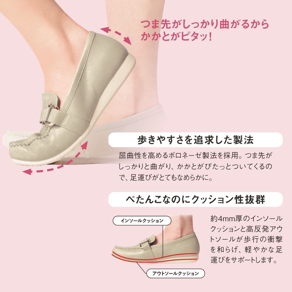 ぺたんこなのにクッション性抜群!歩きやすいモカシン