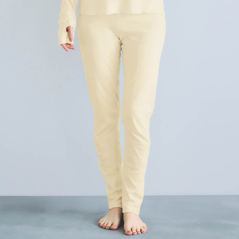 脚まわりのゆったり加減はとても心地よいですし、こちらを着用して寝ると身体が温められるおかげで、夜中にトイレに行かずにすみます。