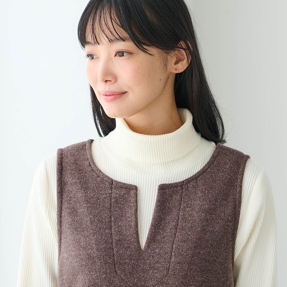 何年も前、こちらで黒のポンチ素材のジャンスカを購入し、着まくったので、買い換えしようとしてるのですが、なかなか気に入ったものに出会えていません。これも、キーネックも素敵だし、暖かそうなんですが、私の身長では丈がもう少し欲しいです。そうするとタイトめのシルエットなので、動きにくくなるかもですが…