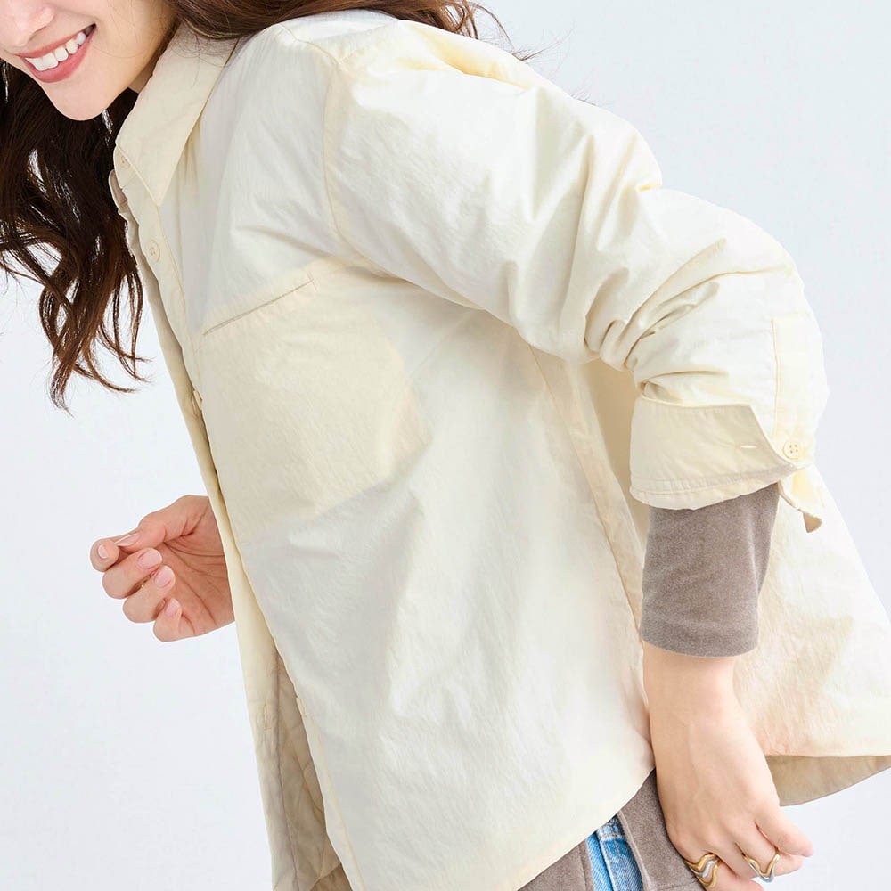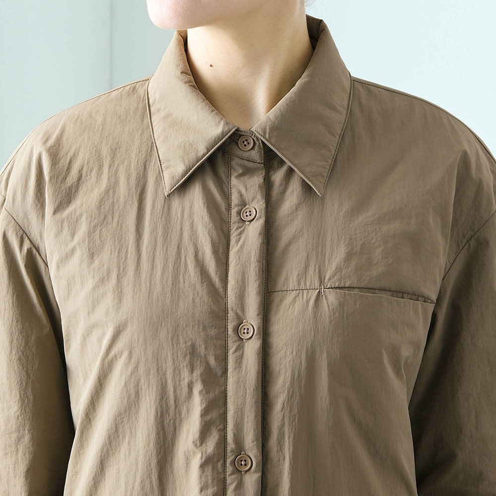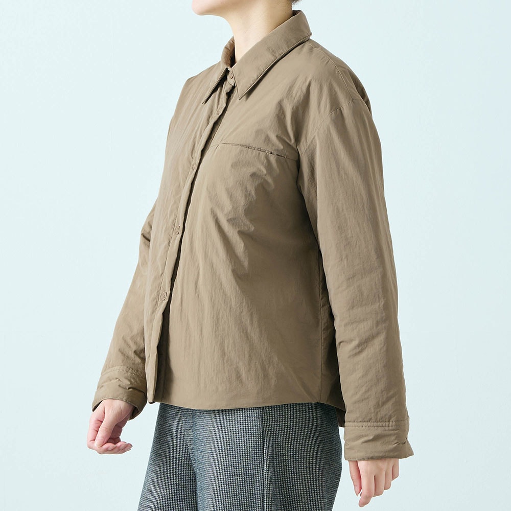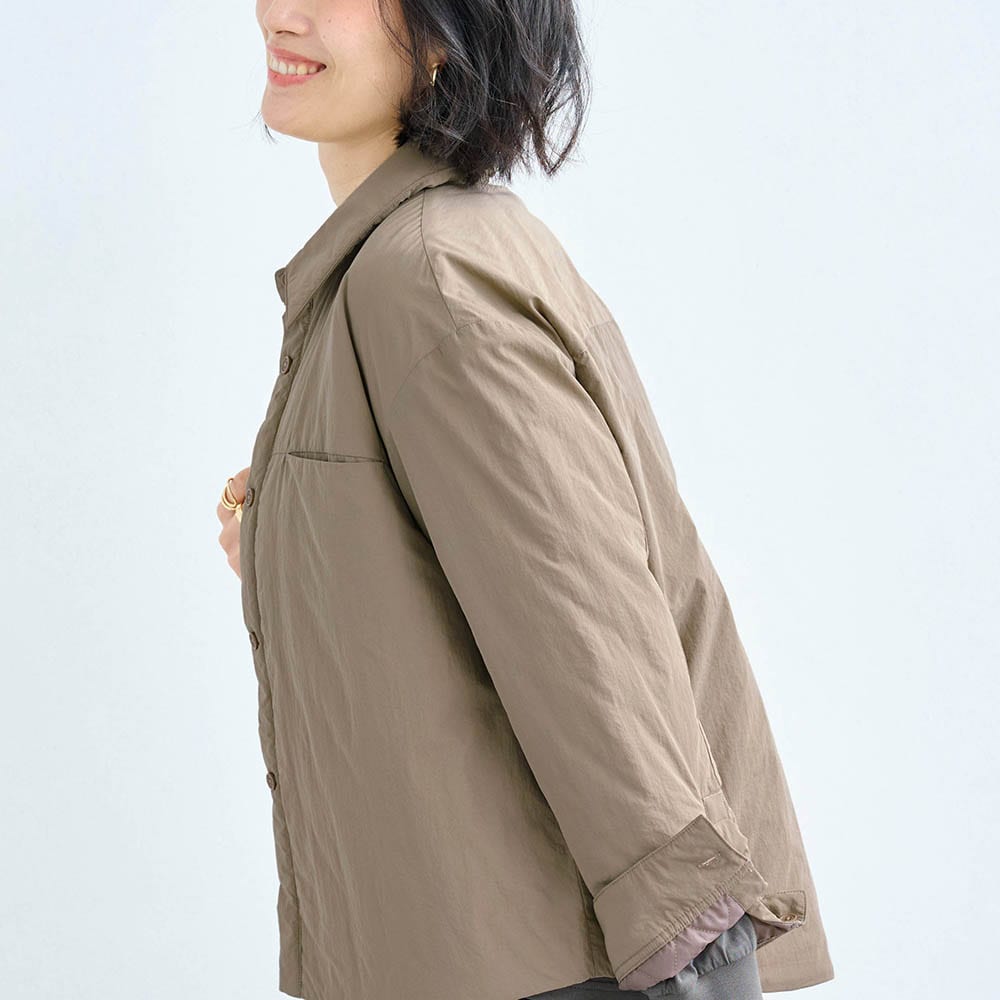 薄手のダウンジャケットの代わりに購入しました。この季節、中にハイネックじゃない物も着るので襟付きはありがたいです。