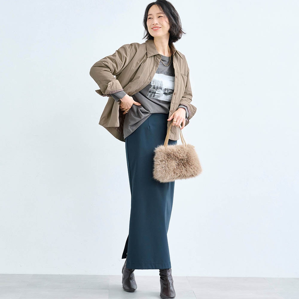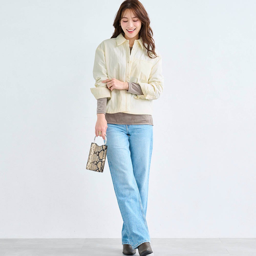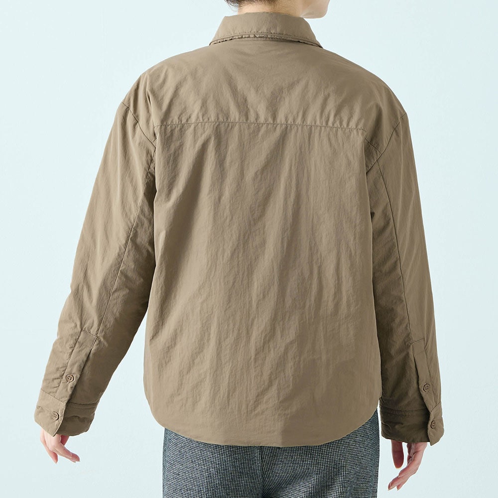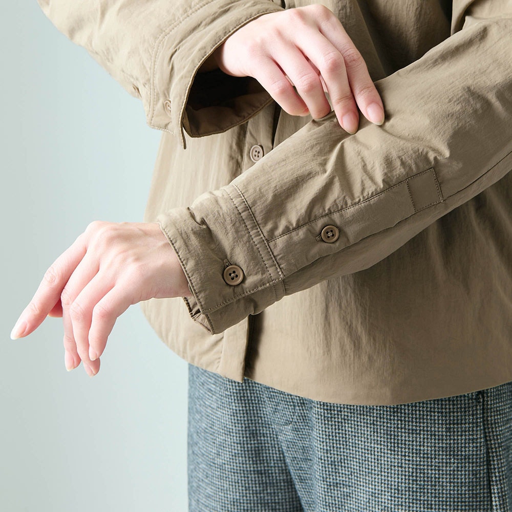 薄手のダウンジャケットの代わりに購入しました。この季節、中にハイネックじゃない物も着るので襟付きはありがたいです。