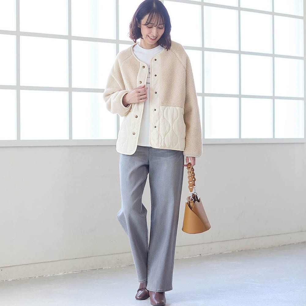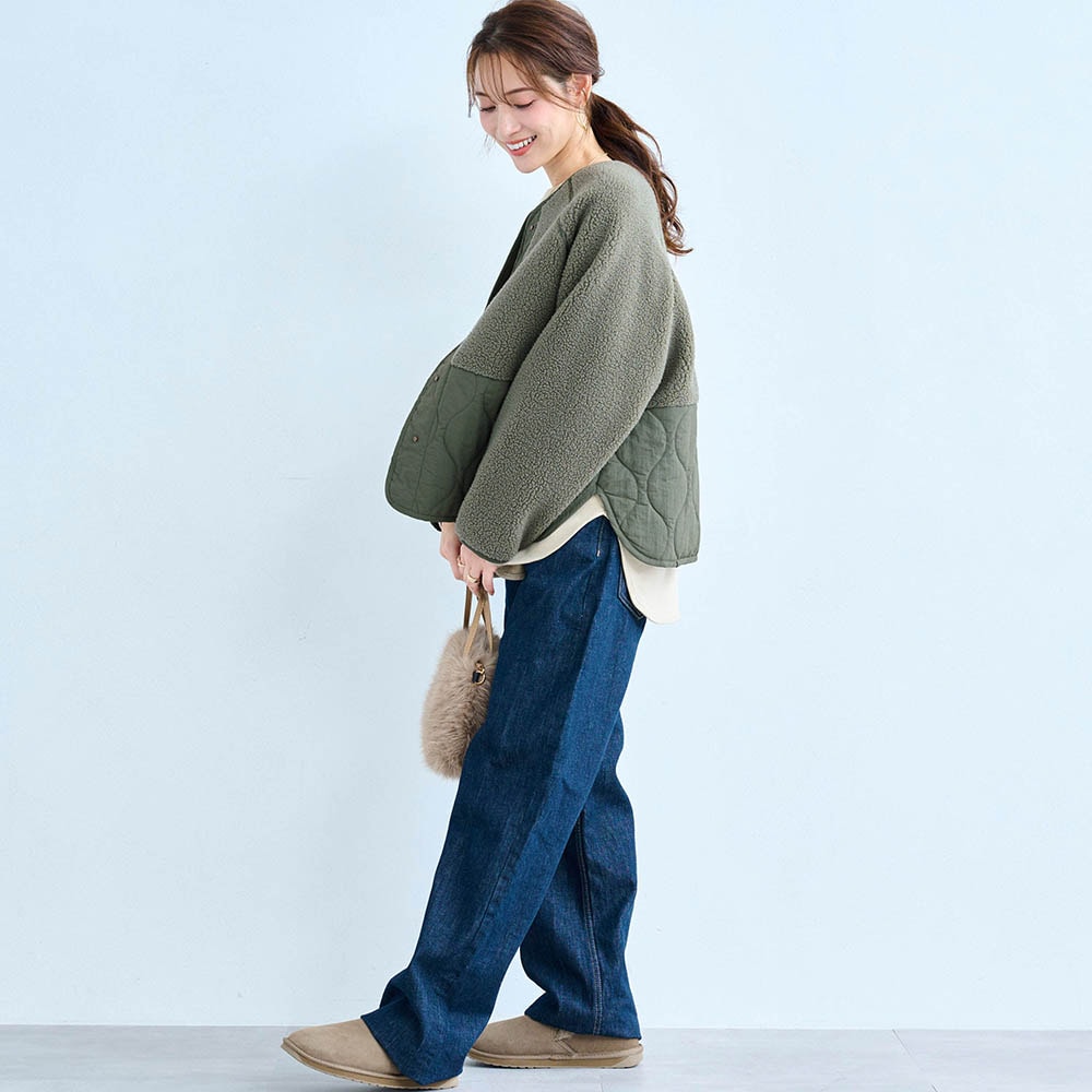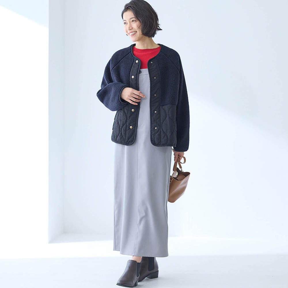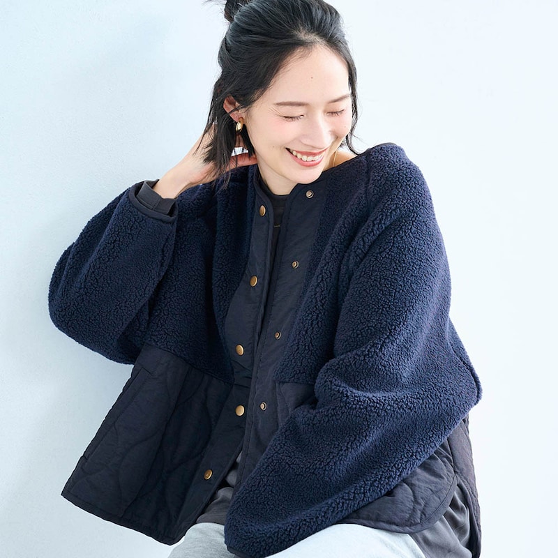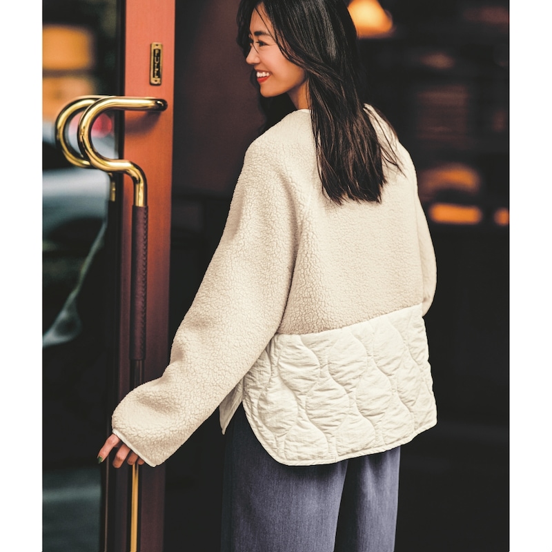 正面から見るといいけど、後ろ姿はキルト部分がなんだか変に思えました。また横に広く軽い素材なのでスタイル良く見えないです。体型に合えば寒くなり始めの秋や、冷える春先にちょうど良いアウターです。