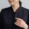 ・グレード感のあるスタンドカラーに深めのVネックを組み合わせ、シャープで都会的な印象に。