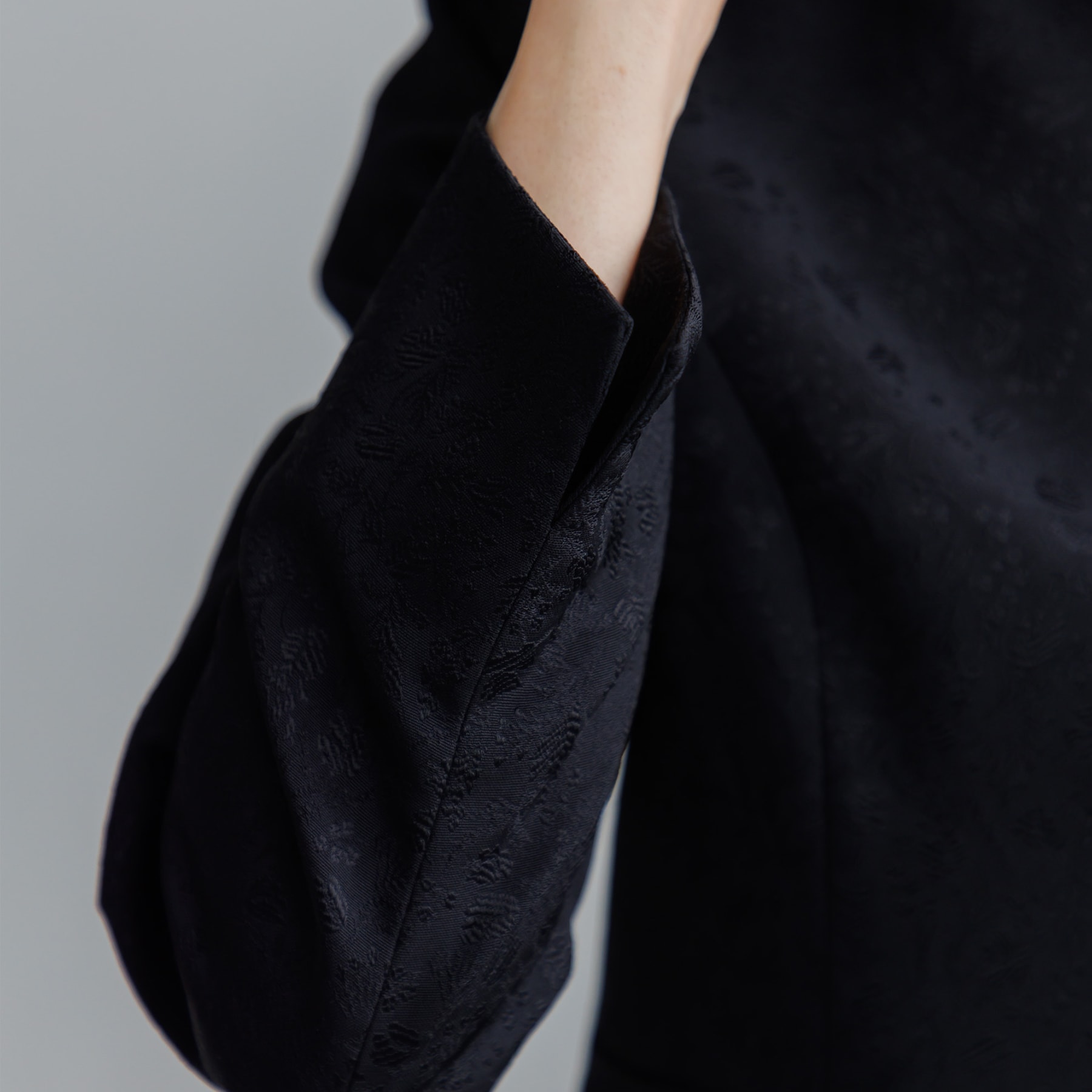 繊細なデザインの米沢織ジャカードを使用した高級フォーマルウエア 「体型が変わっても長く着られる」