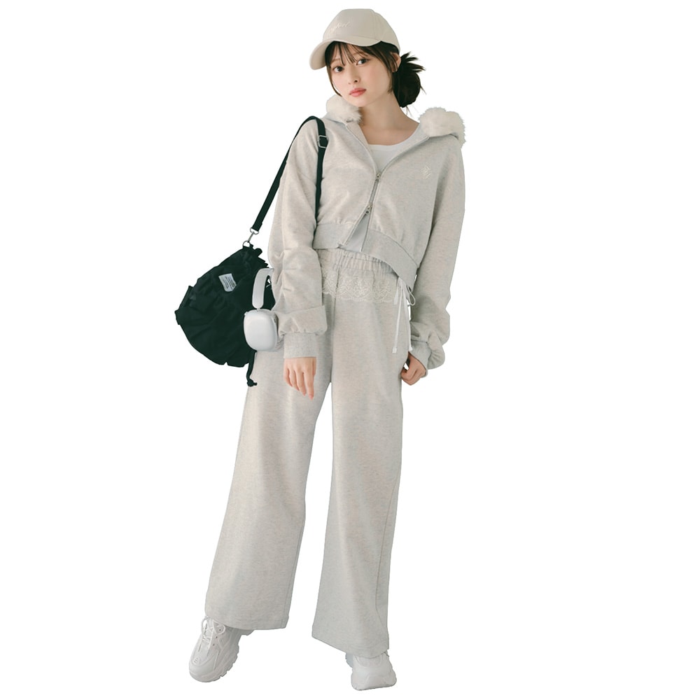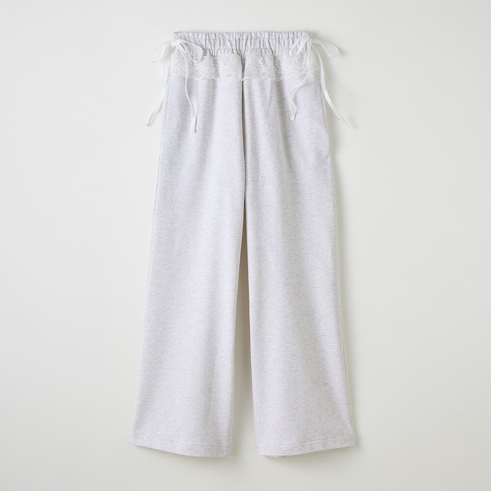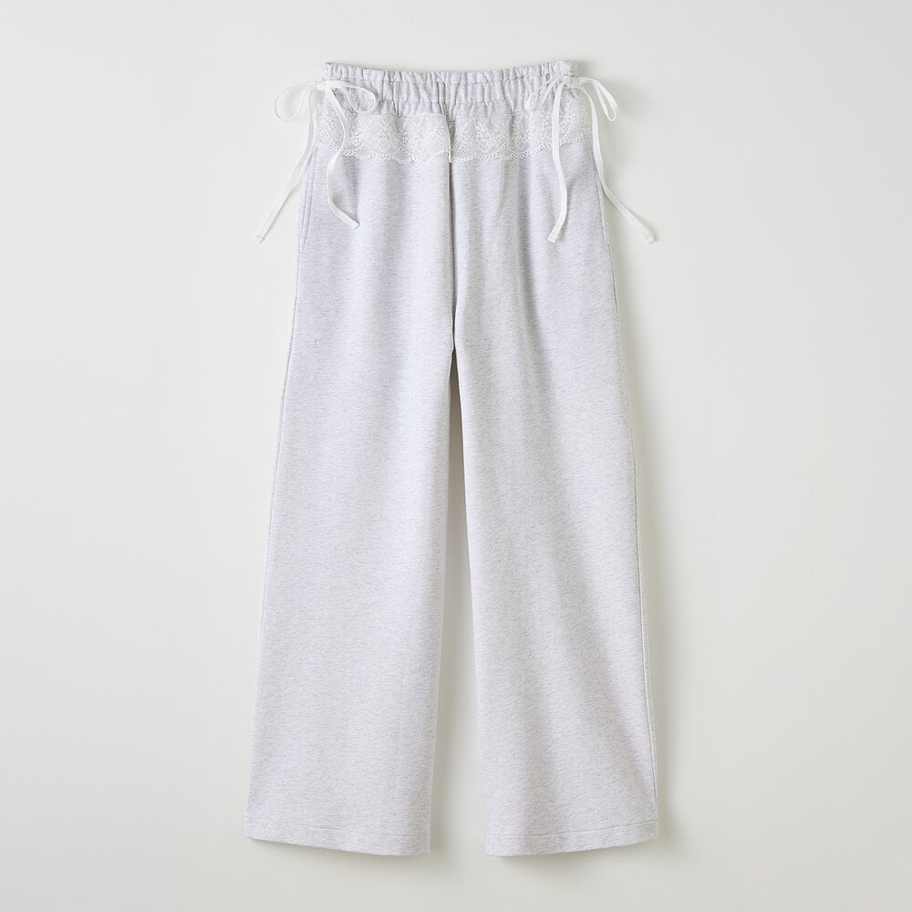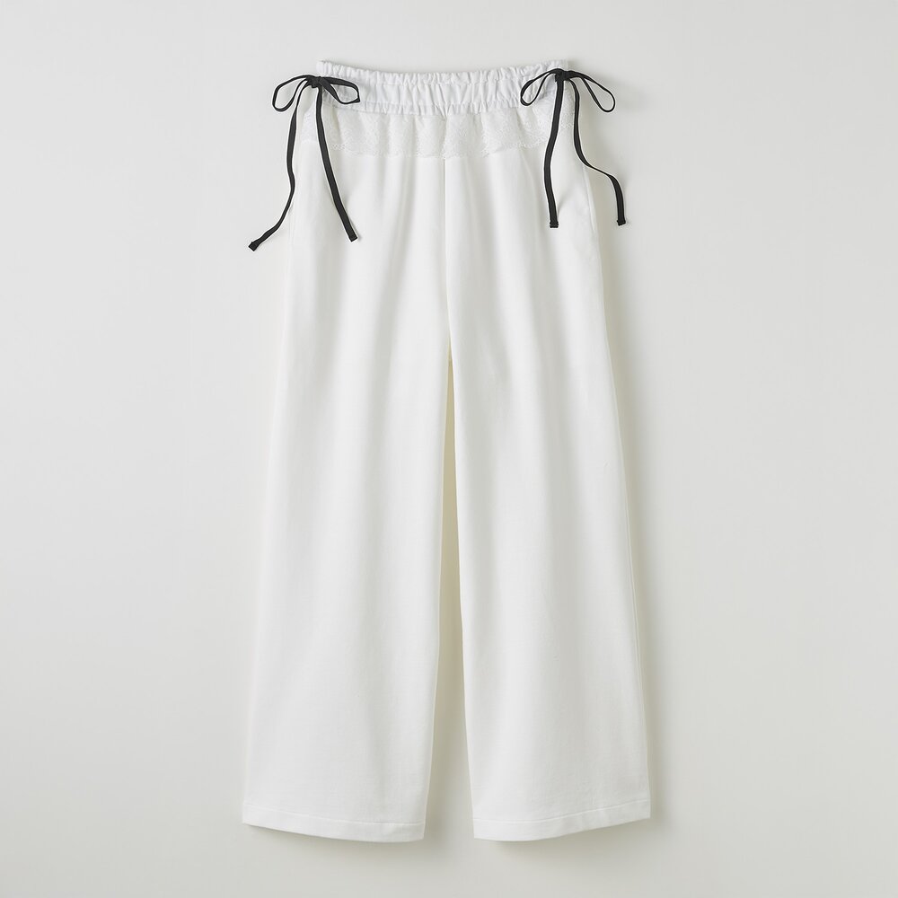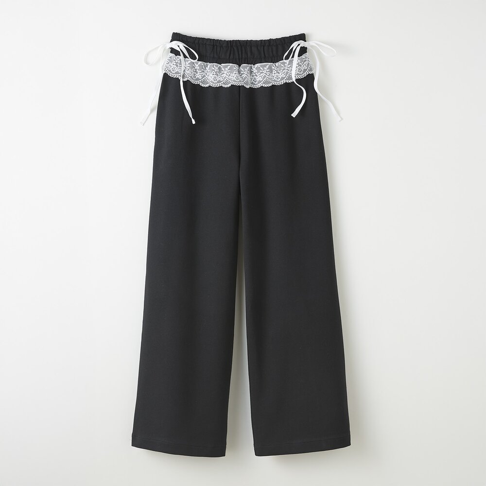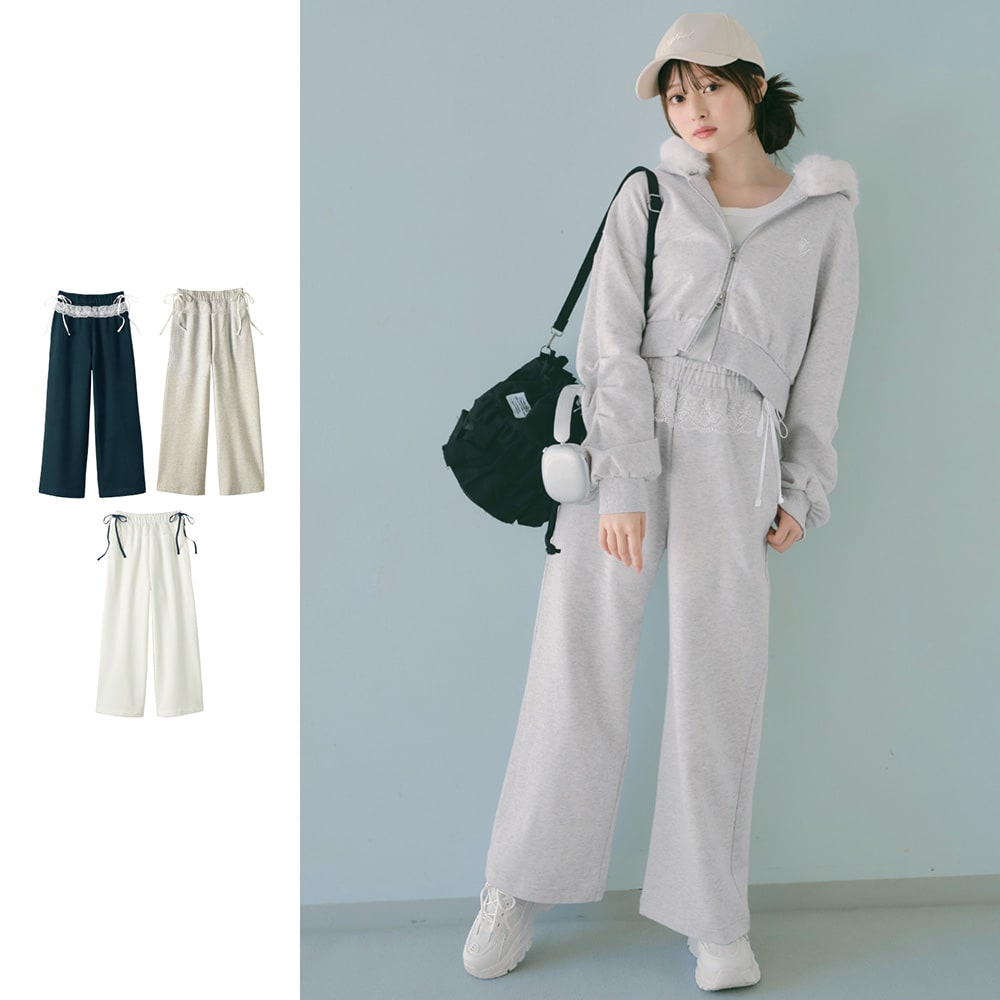 【高比良由菜・ゆなちゃんコラボ】サイドリボンレースデザインコットンスウェットワイドストレートパンツ(ウエスト調節可)【セットアップ可】 【子供ズボン】