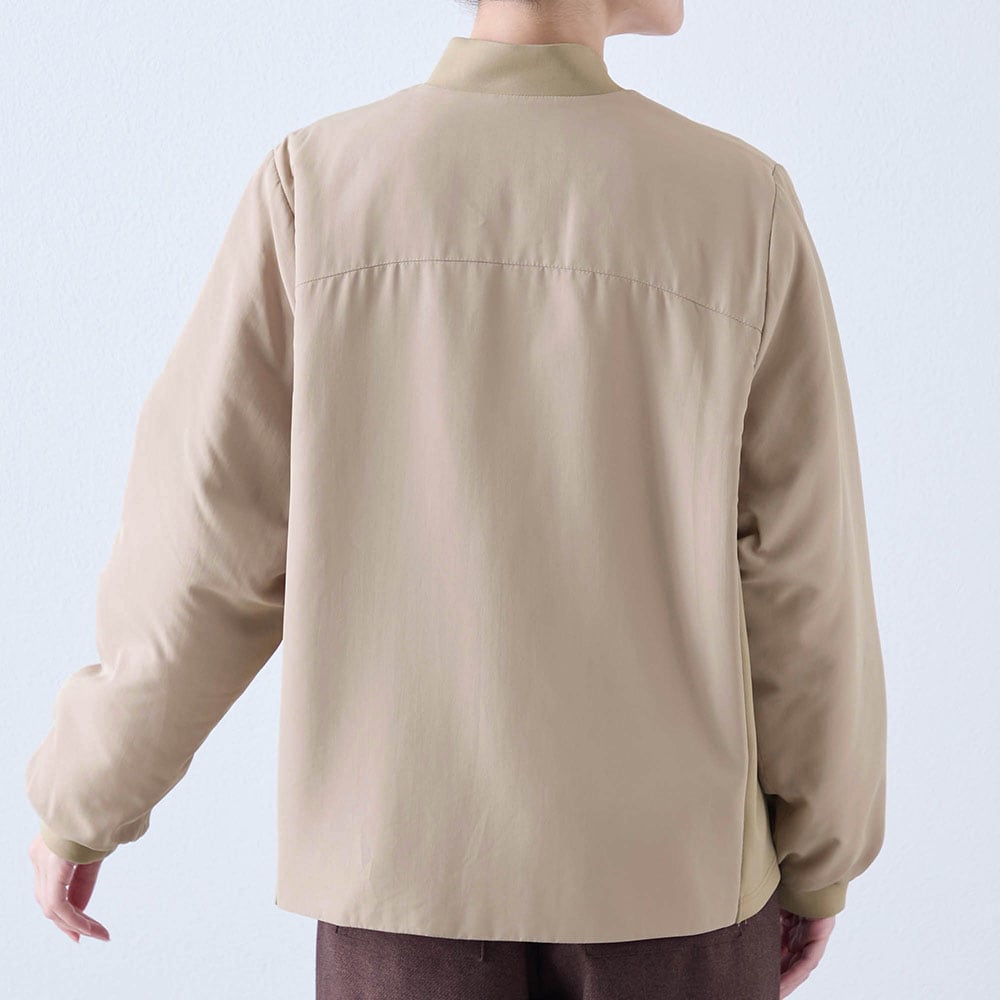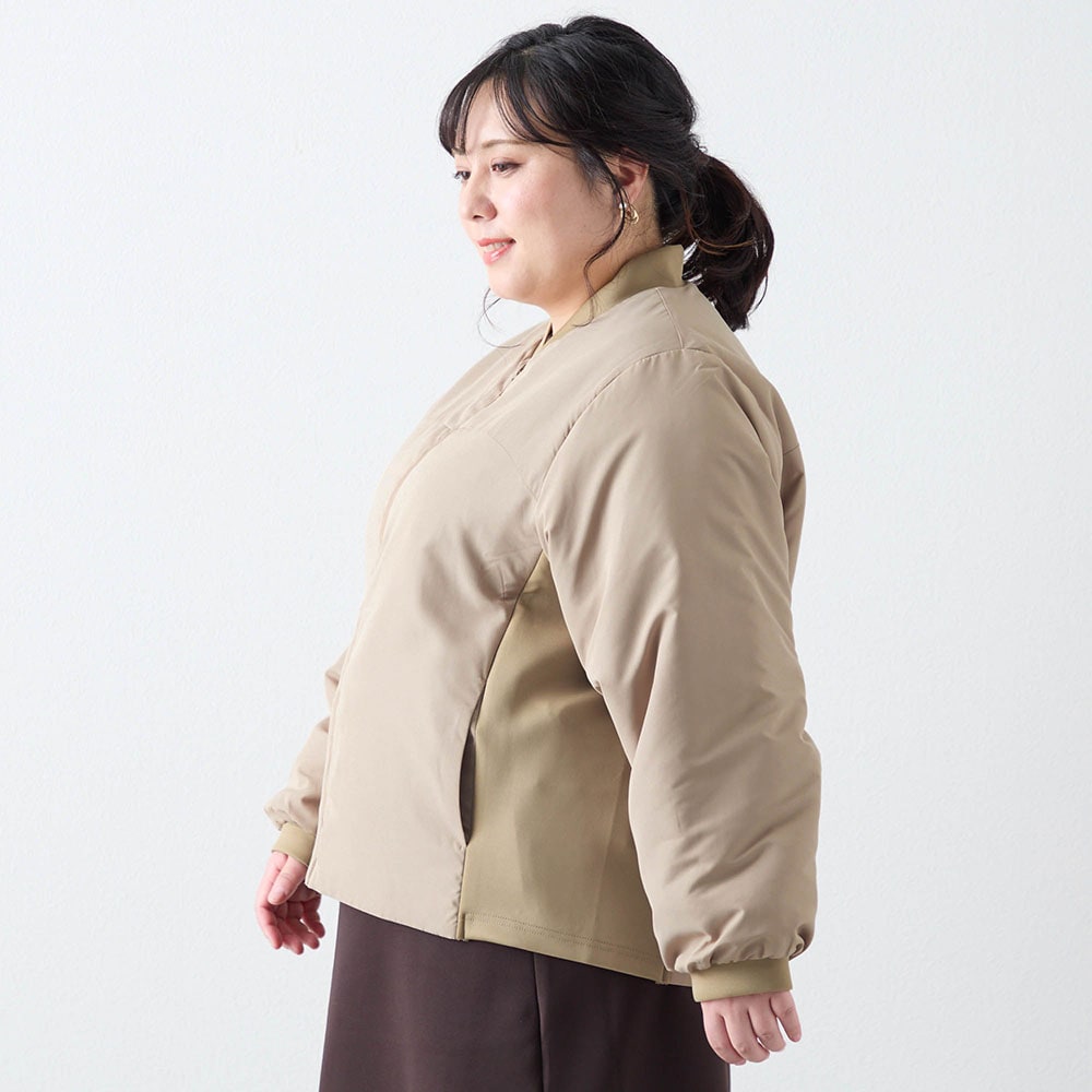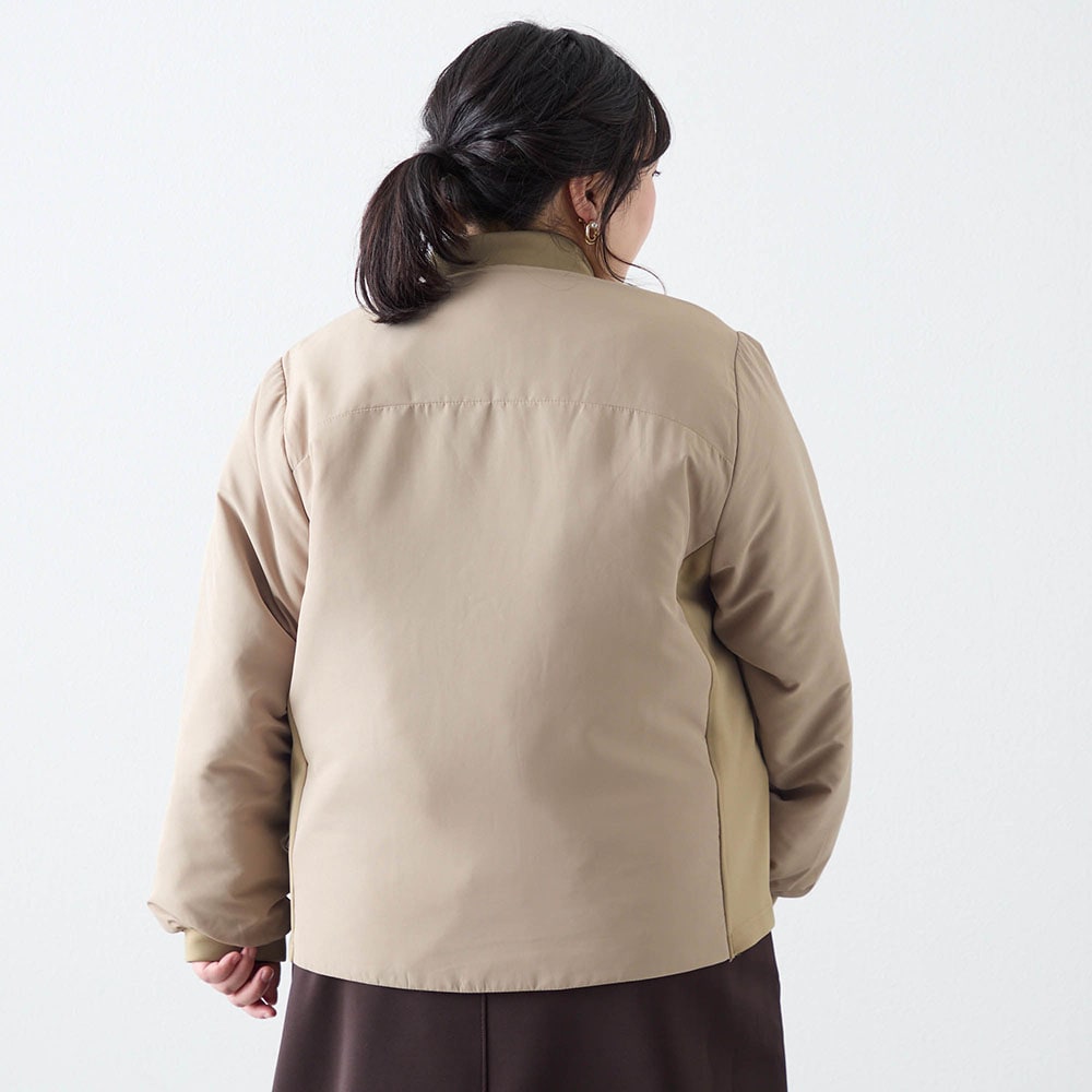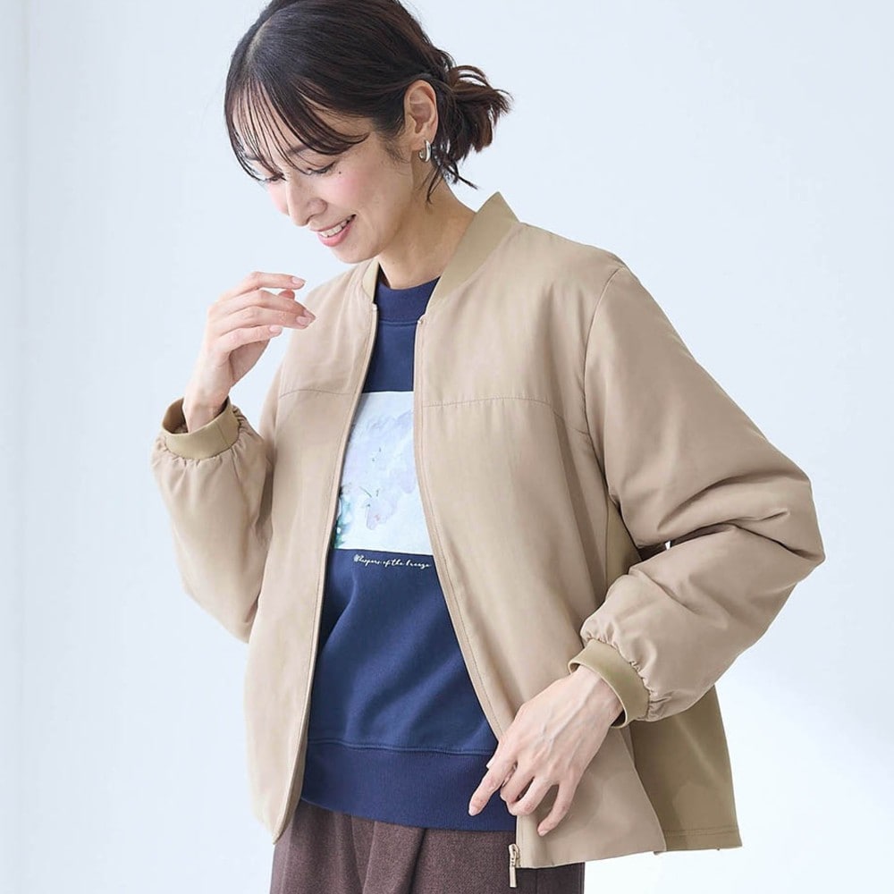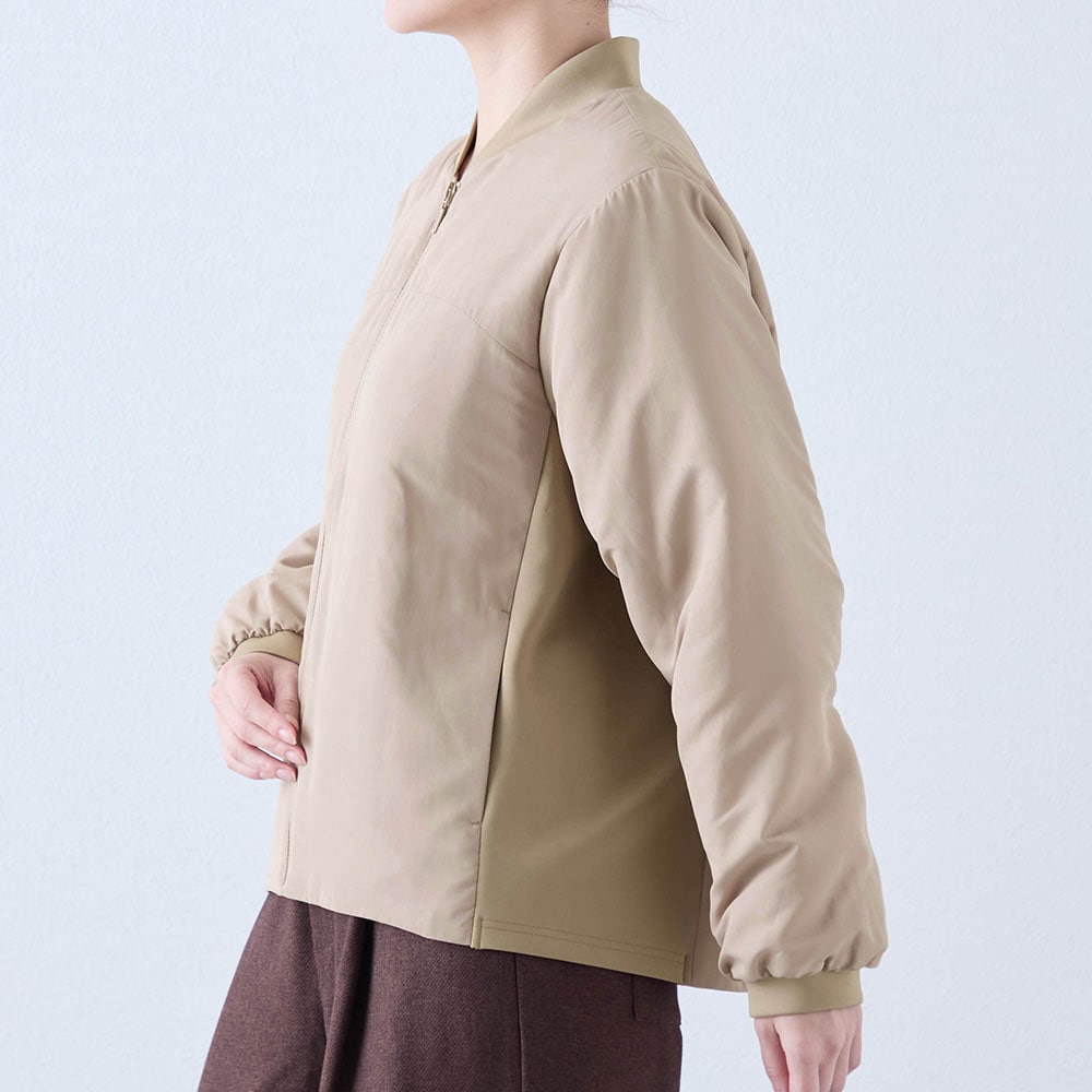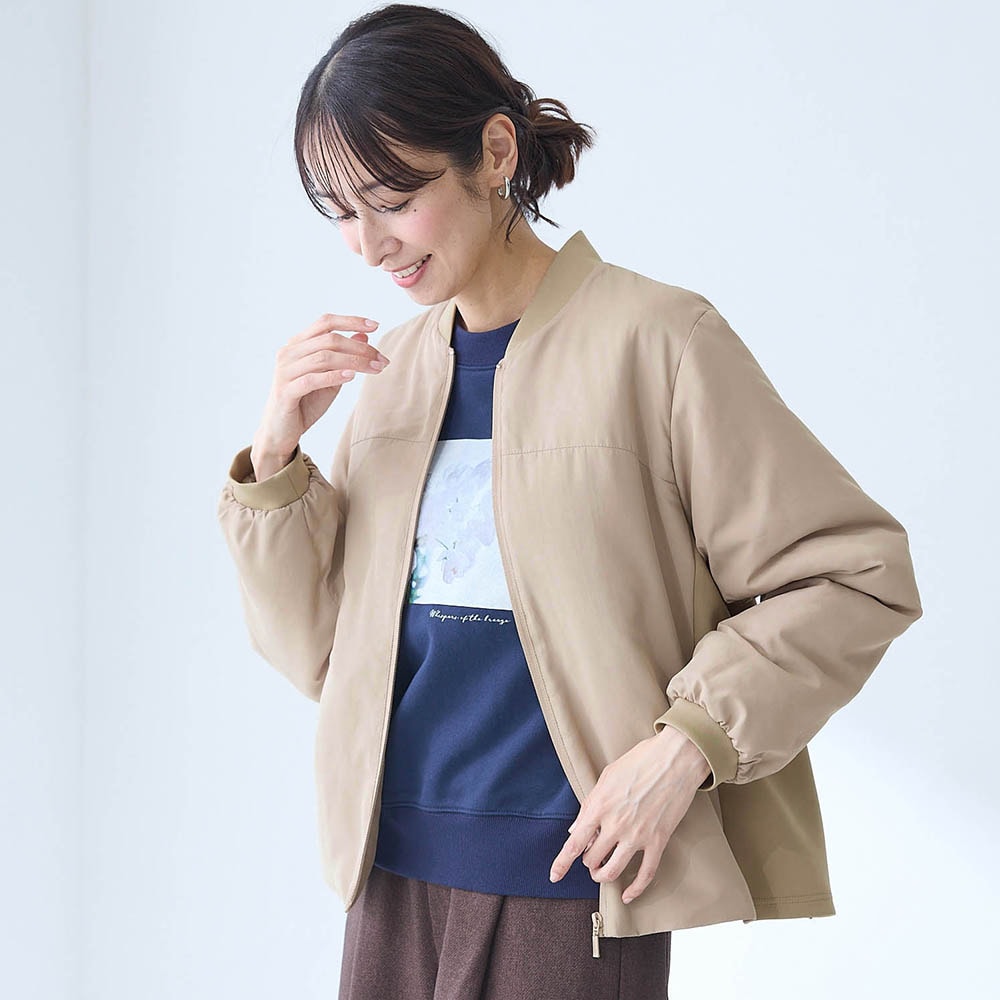 商説の通り、着た感じは軽いです。何よりサイズ感がとても気に入りました。ファスナーを閉めても、サイドのストレッチ素材のお陰できつくないです。保温と撥水については、そういう天気の時に着てないのでわかりません。