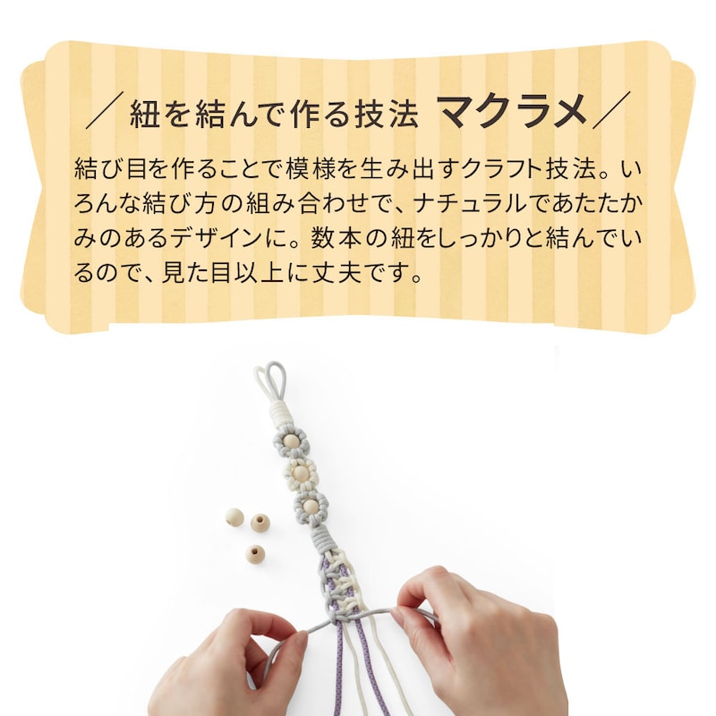 紐を結んで楽しく作れる、大人可愛いストラップ