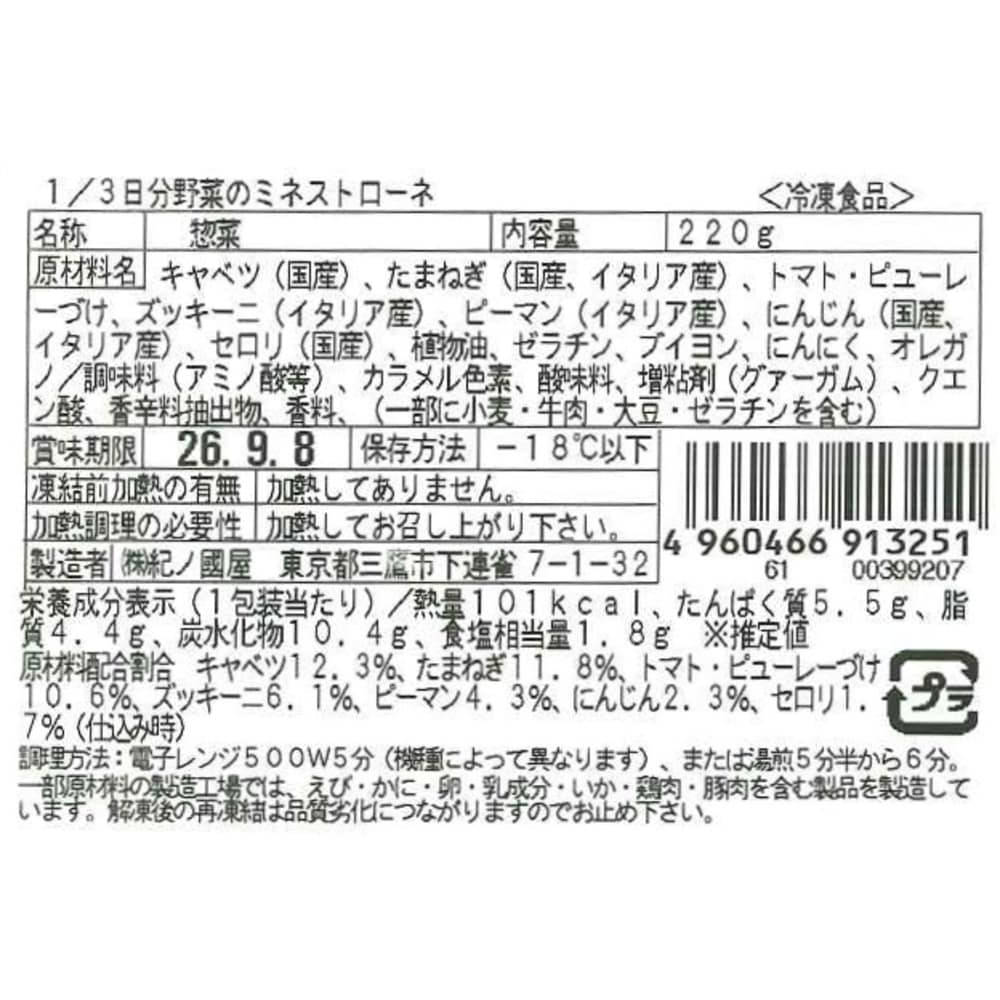 ・1/3日分野菜のミネストローネ:1/3日分の野菜を使用。野菜の旨味が溶け込んだ優しい味のスープです。