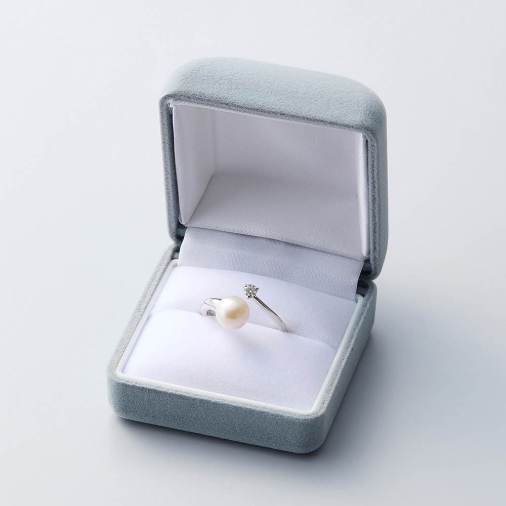 ●素材:シルバーにロジウムめっき、あこや真珠(約7.5mm珠)、モアサナイト(合成石・約0.1ct)