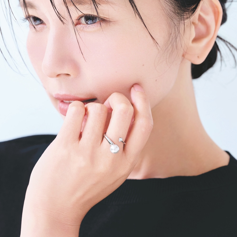 ・上品な照りと輝きが魅力のあこや真珠と、ダイヤのような輝きを放つ