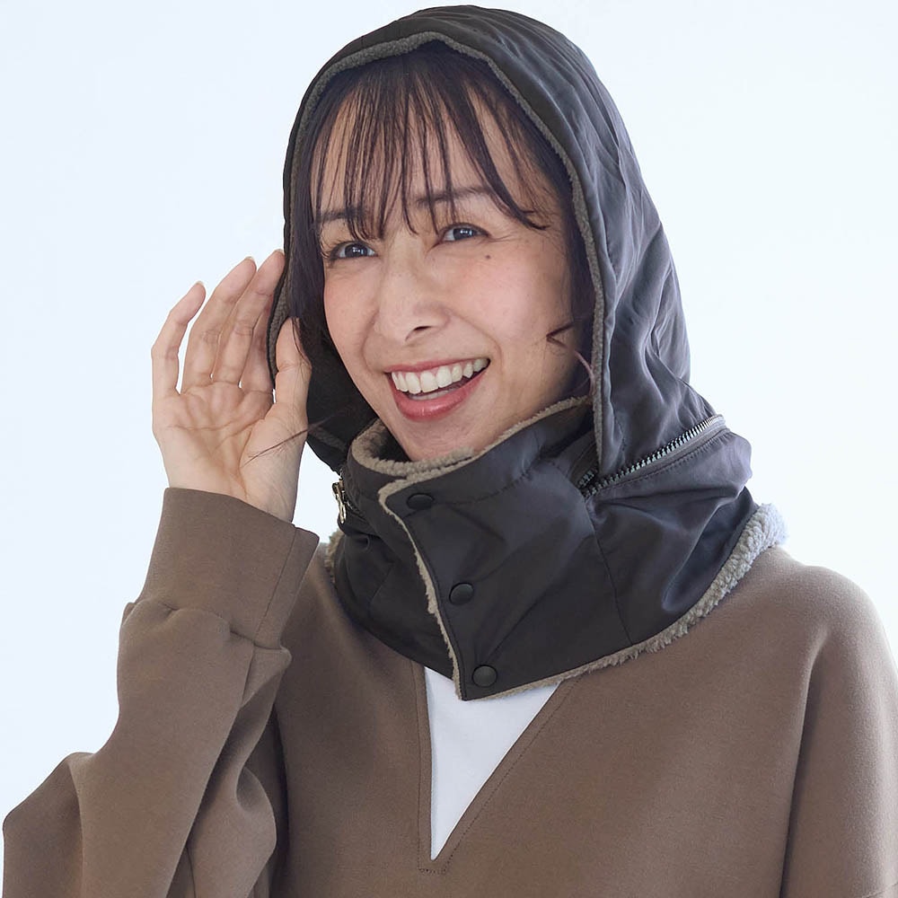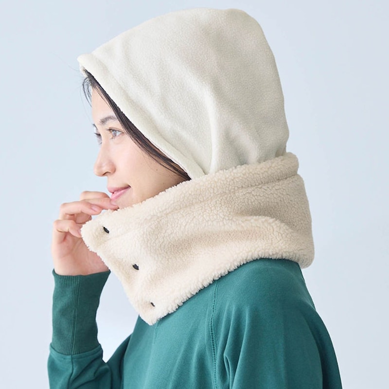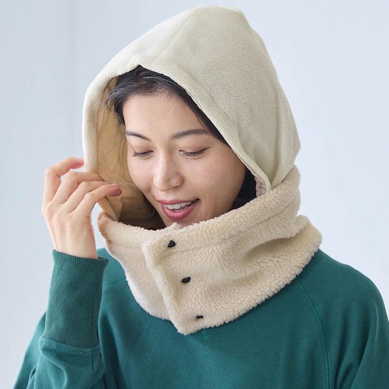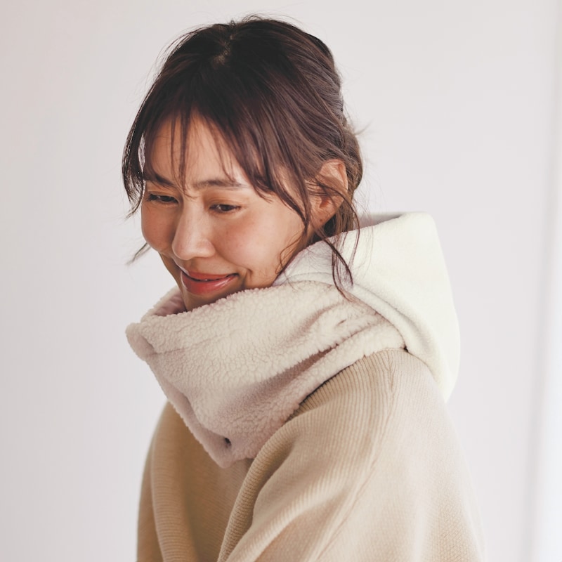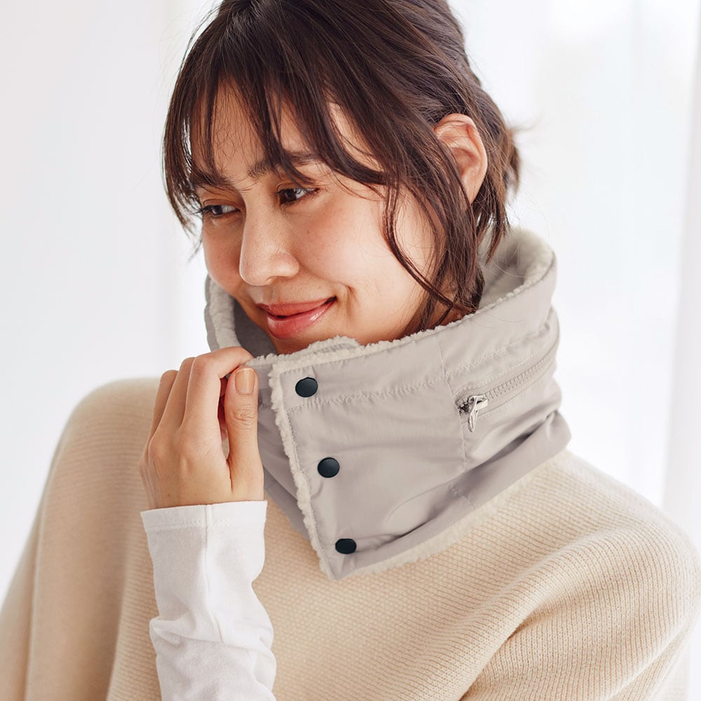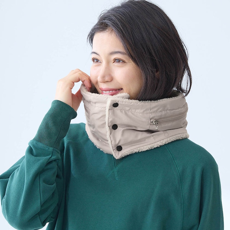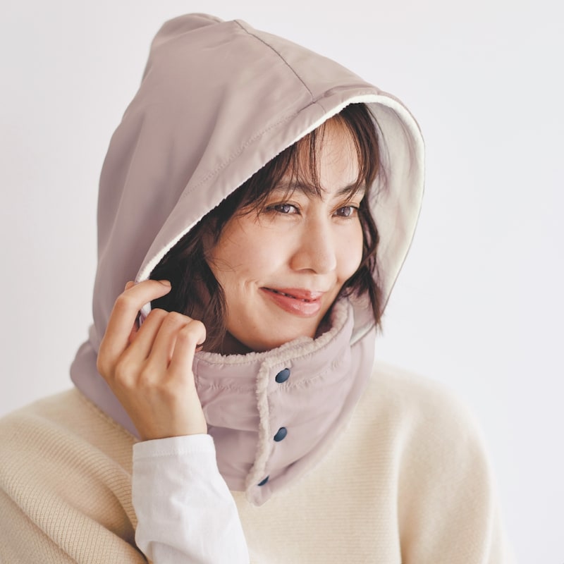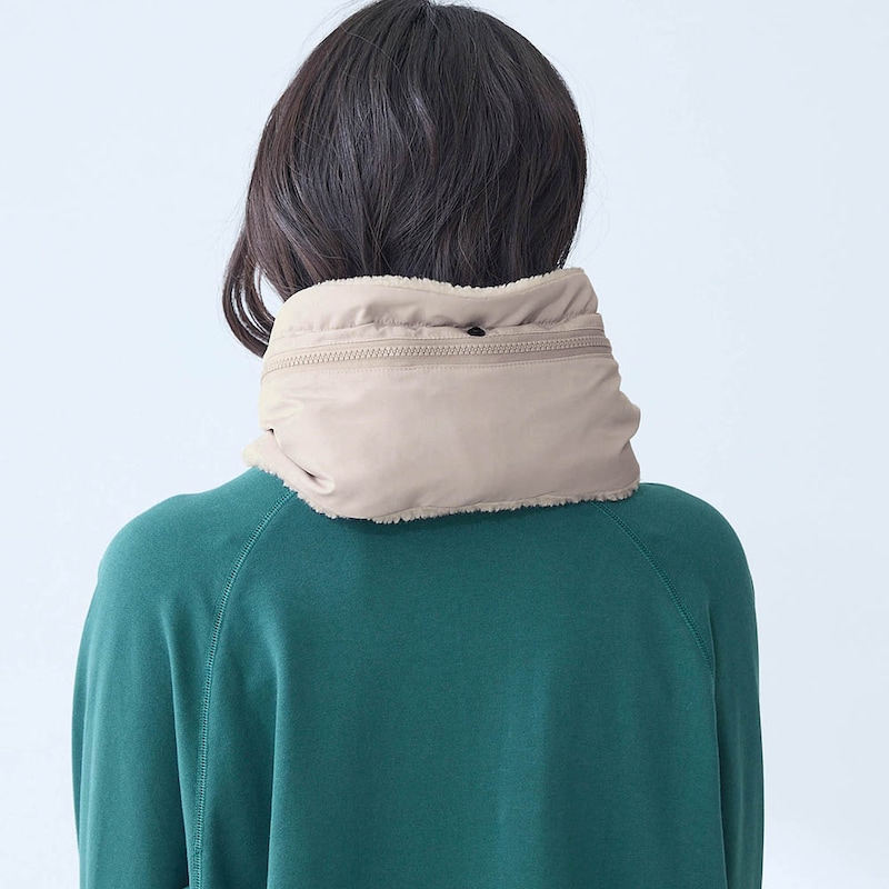 電車通勤で外と電車内の温度差があり、電車内で外して持っていてもかさばらない防寒具を探していました。こちらは暖かいですし、コンパクトなのでよかったです。フードが収納できるのもよいです。