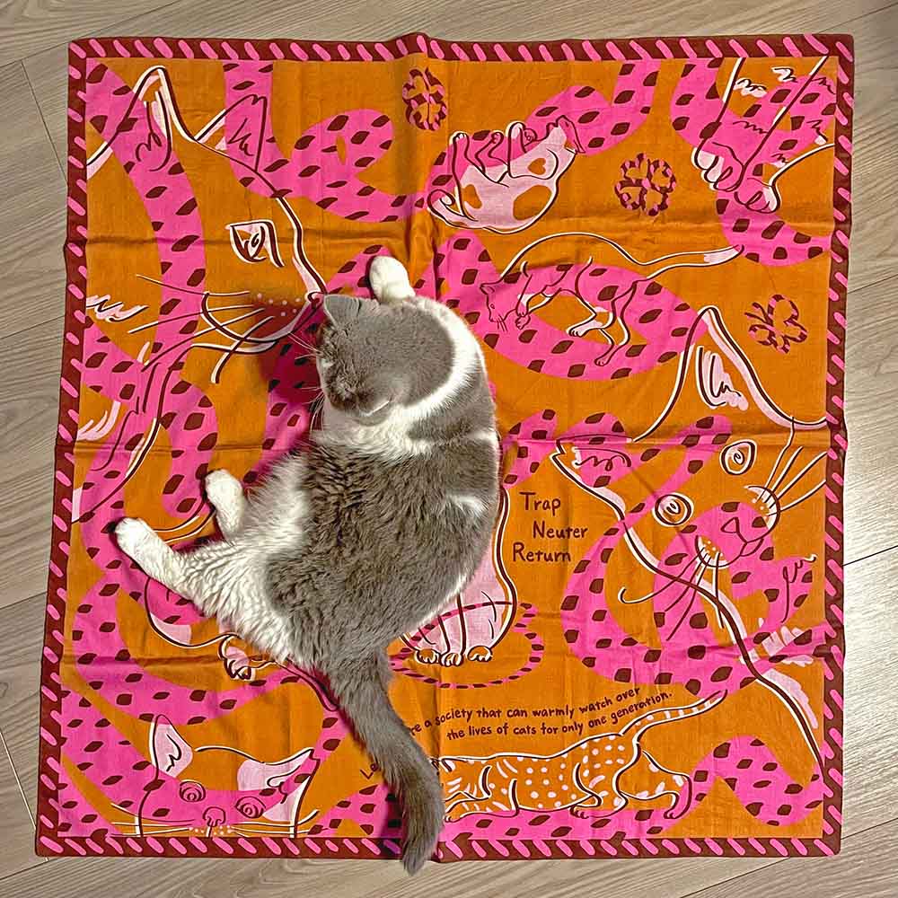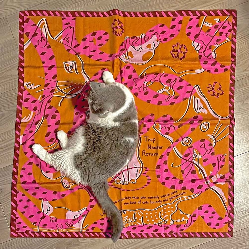 「スカーフや、インテリアにも◎」地域猫の活動を応援するチャリティふろしき(大サイズ)[日本製]
