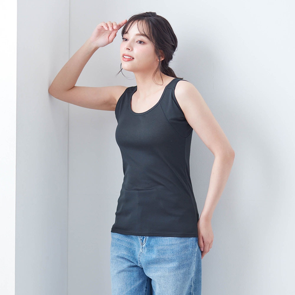 タンクトップタイプよりも袖がある方が洋服に汗ジミができない印象だけど、これはタンクトップでもバッチリ! 汗ジミを気にせずに過ごせるのでノンストレスです。