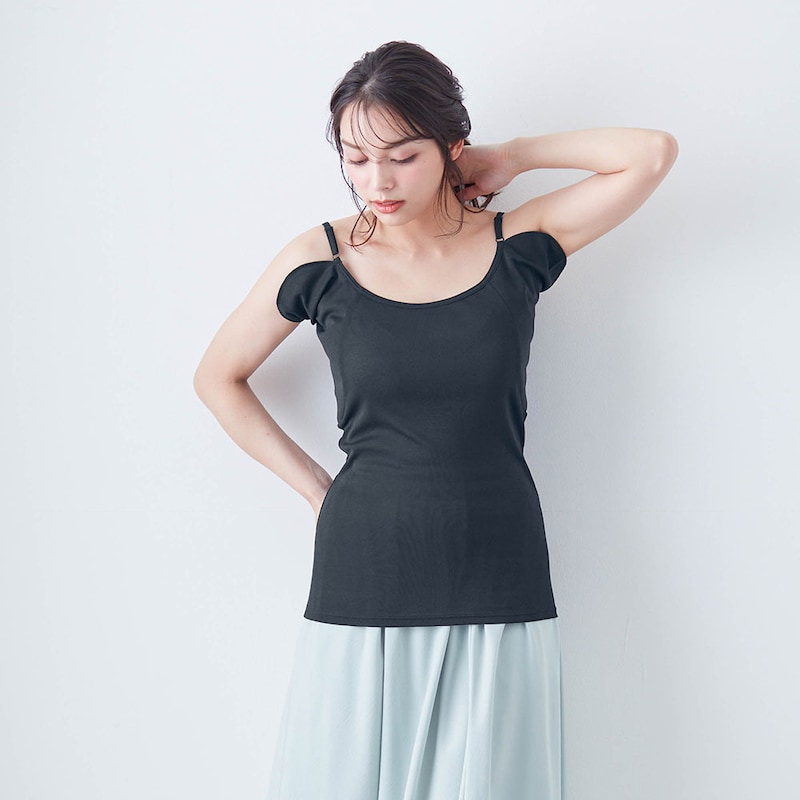 ・ストラップ調節可能なキャミタイプで汗取りパッドが脇にぴったりフィット