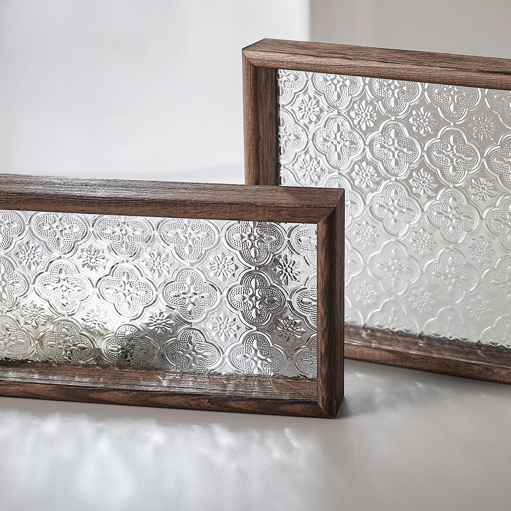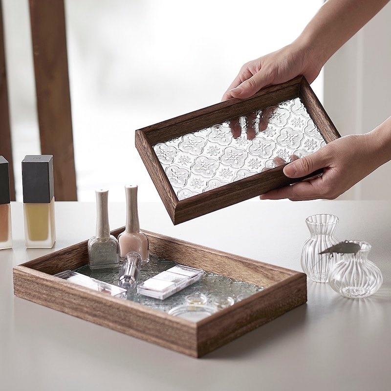 ●台湾伝統のベゴニアの花柄のガラスと温もりのある天然木を組み合わせたレトロなトレー