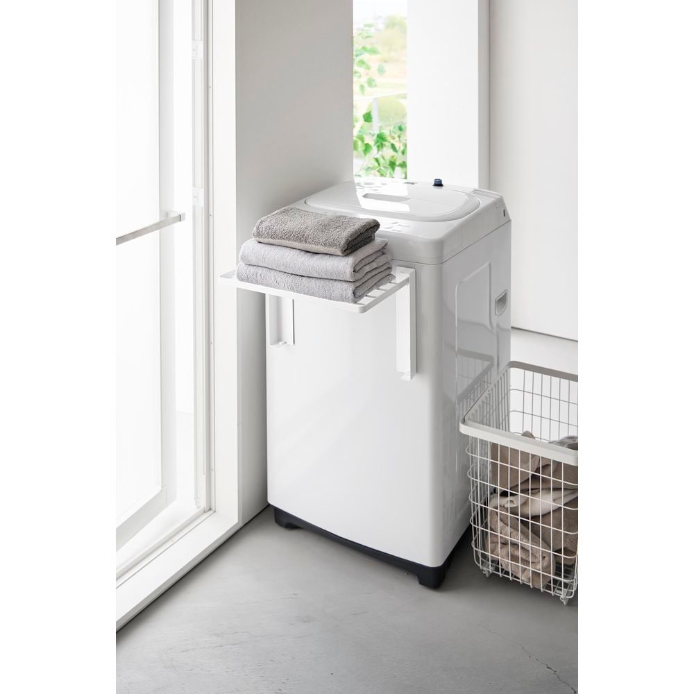 マグネットで洗濯機の正面や側面に簡単取り付け!使いやすい高さで使える折り畳み棚です。