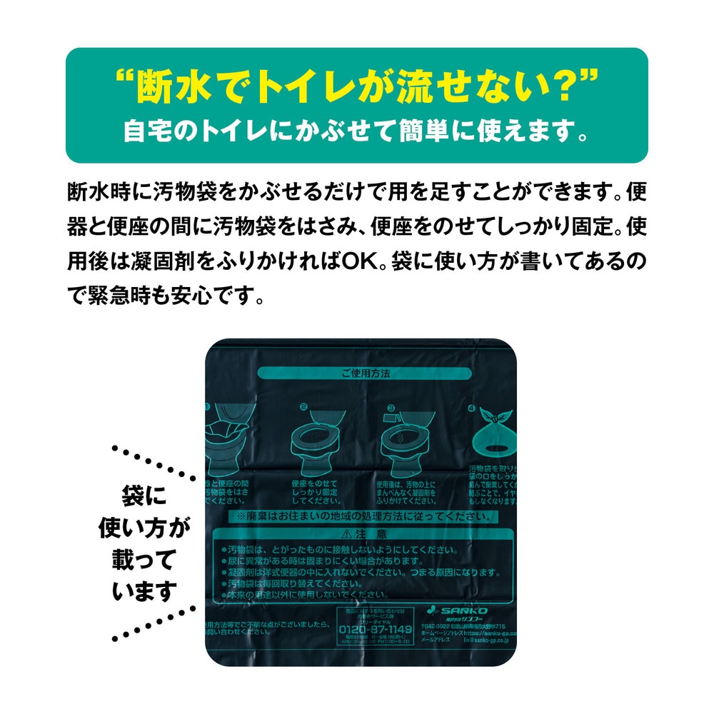 【1回のみお届け】[30回分] 使い方が書いてあるトイレ袋 抗菌凝固剤付