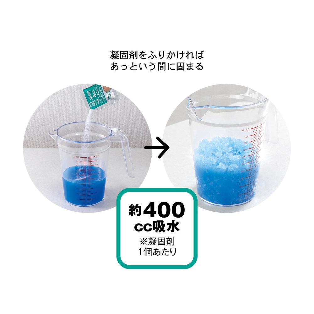 ●凝固剤1個あたり約400cc吸水