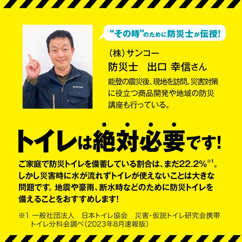 断水でトイレが使えない時のために常備しておくのがおすすめ。