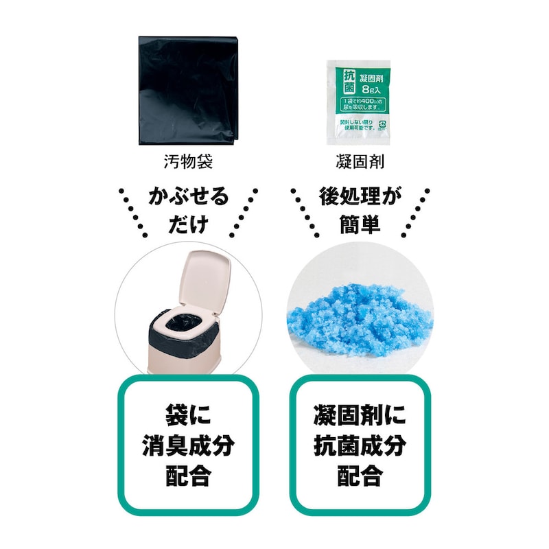 ●主材/凝固剤:高分子ポリマー、汚物袋:ポリエチレン