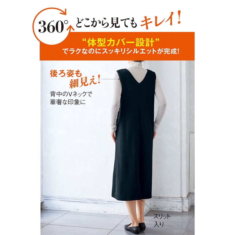 体型カバー設計でラクなのにスッキリシルエットになれるから、360度どこから見てもキレイ!