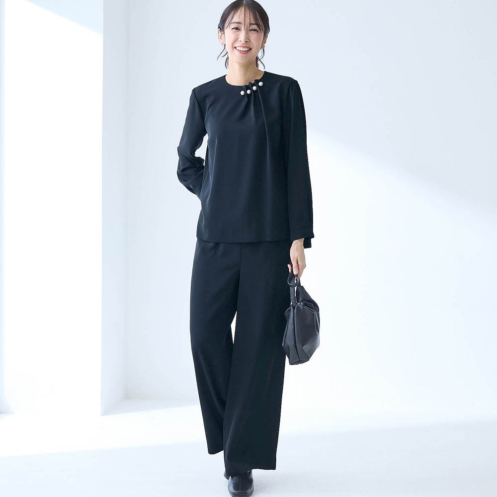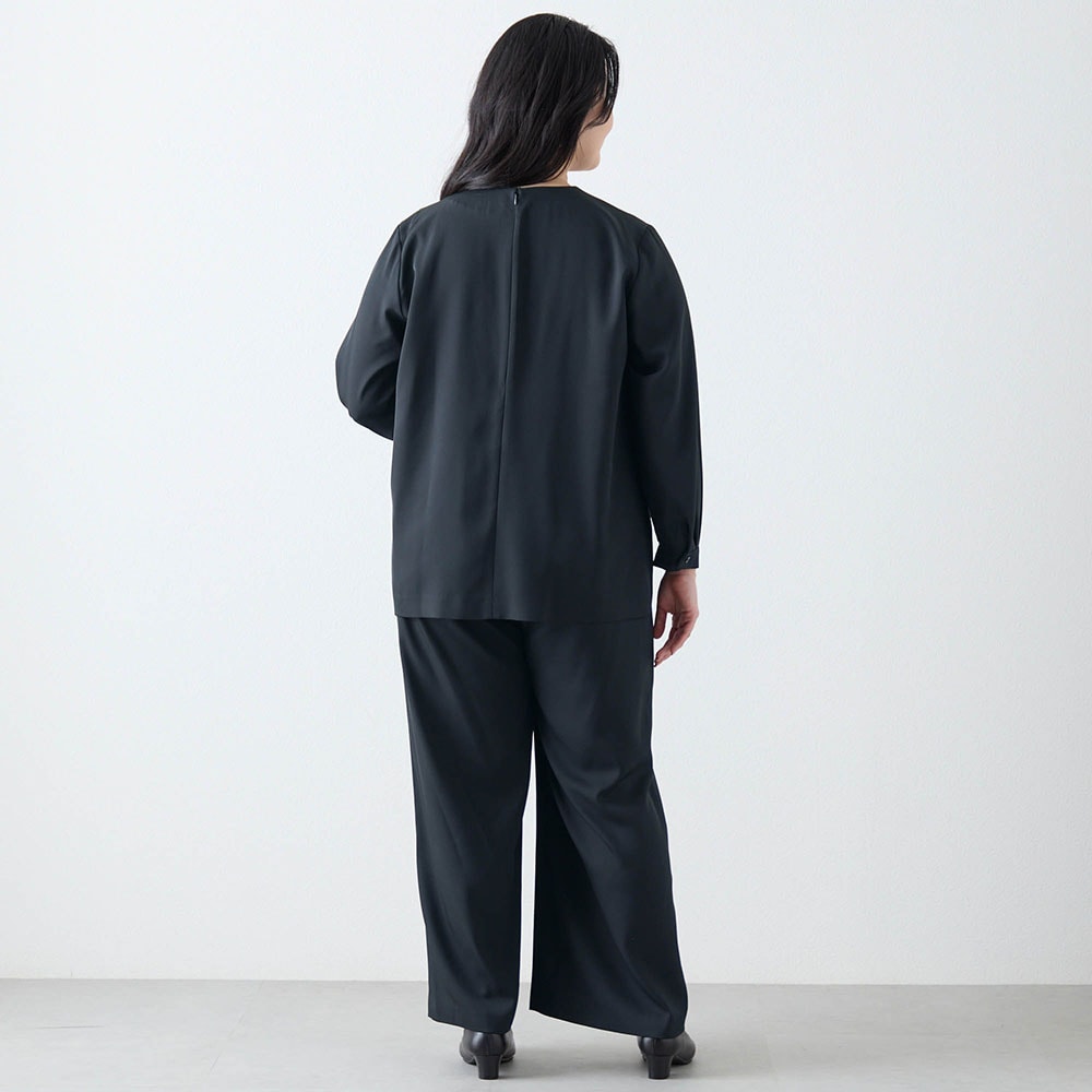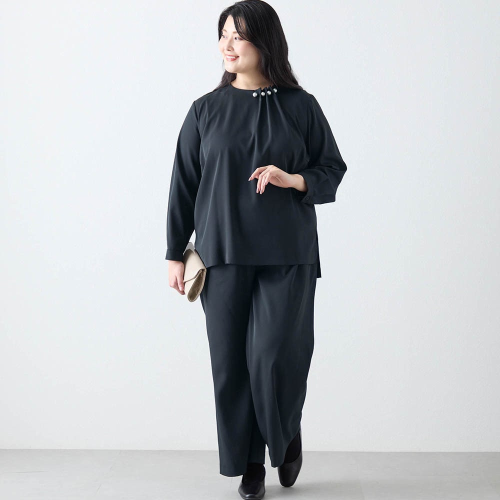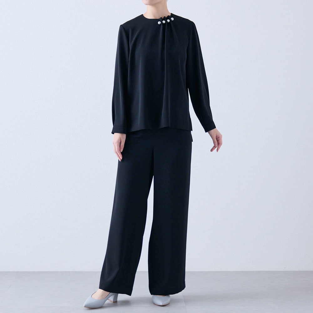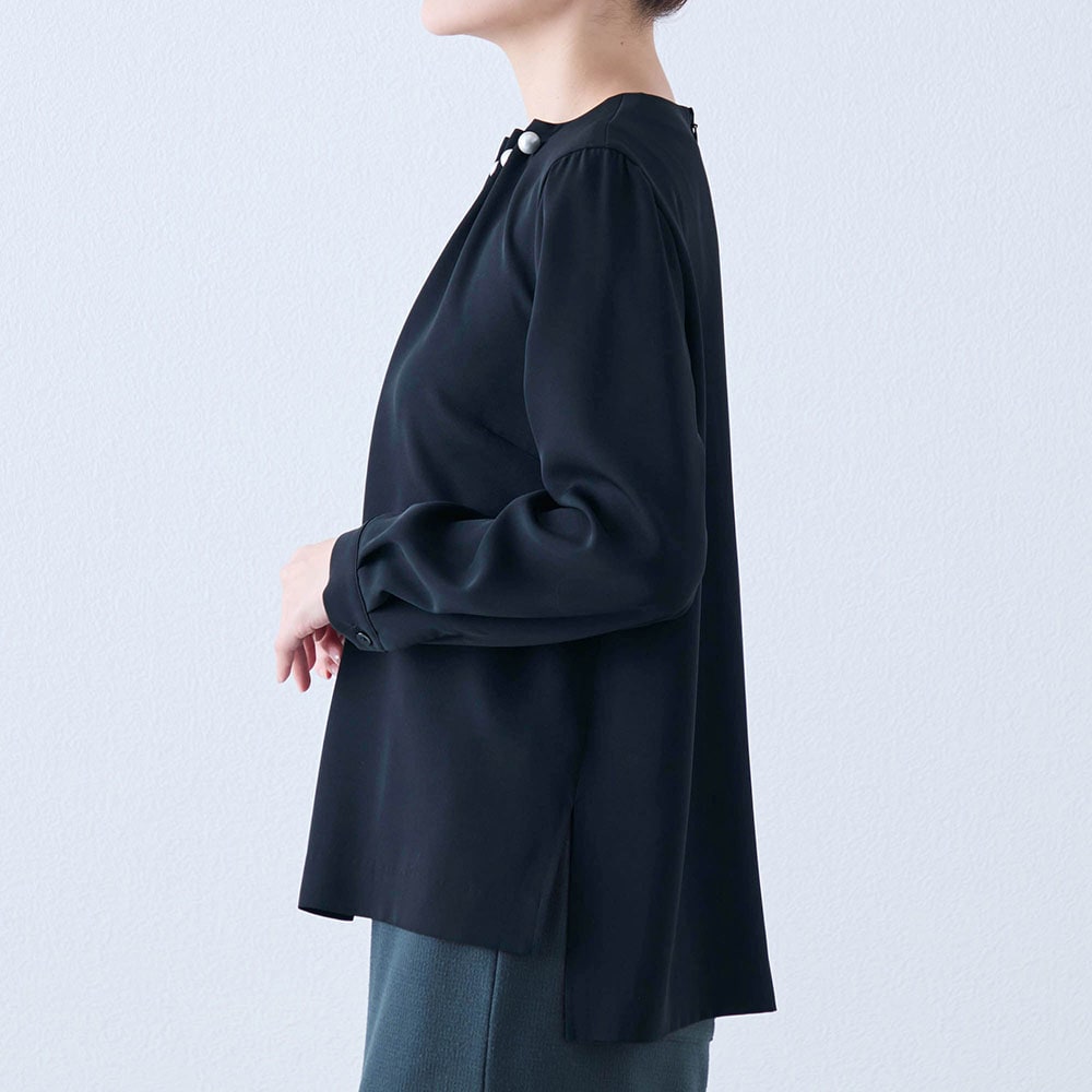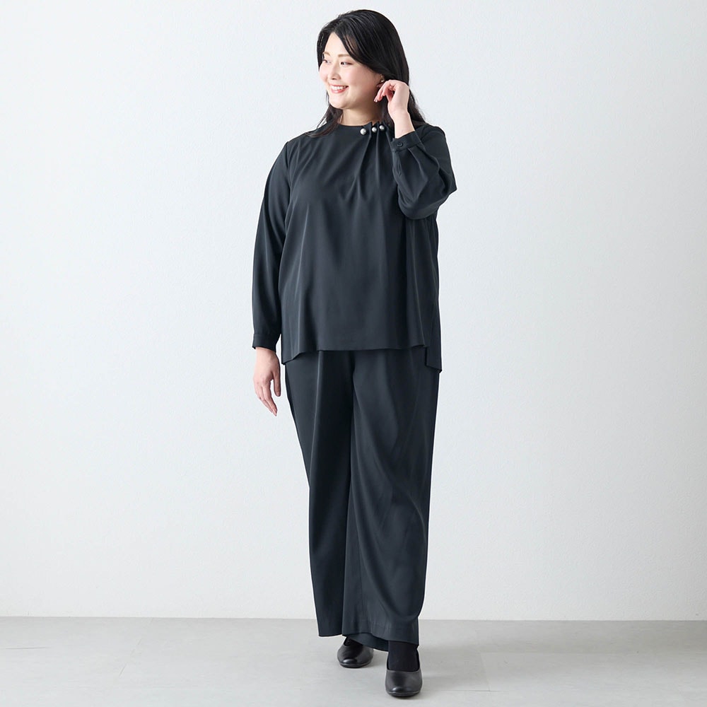• 襟元にはパール調の大きめボタン付きでアクセサリー無しでもOK
