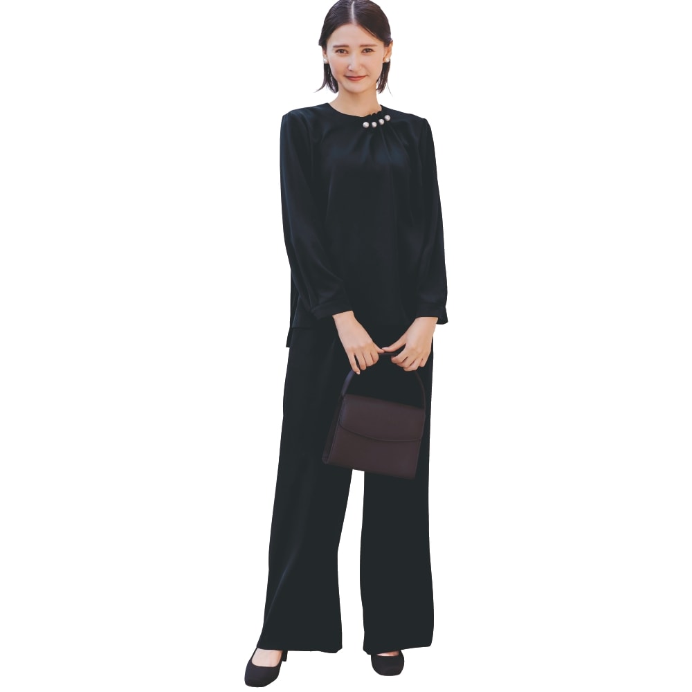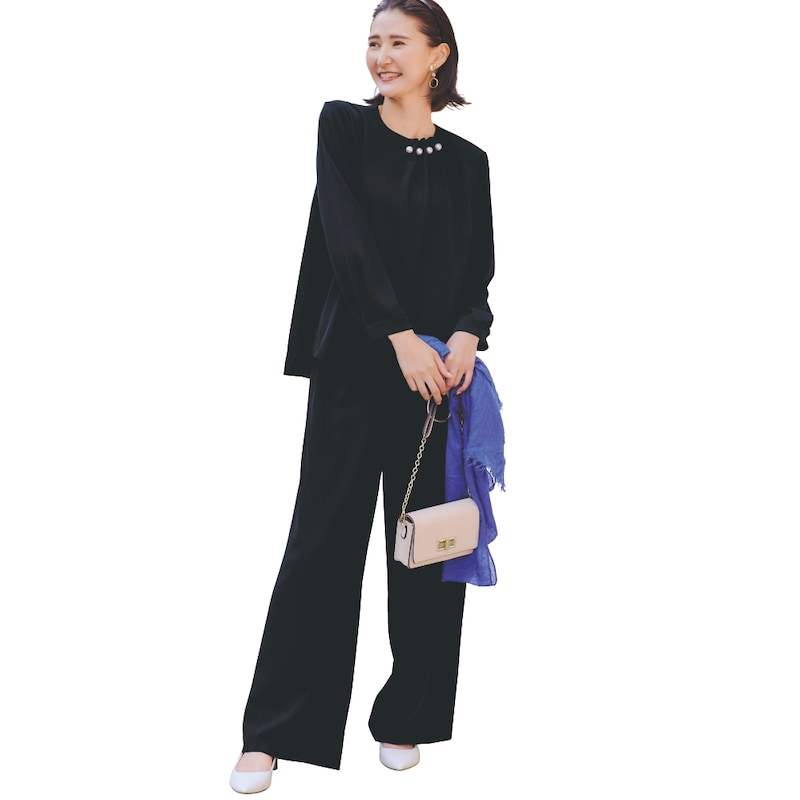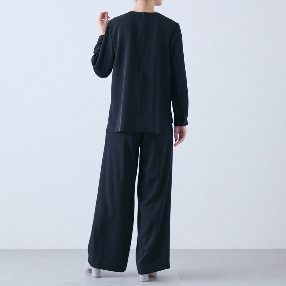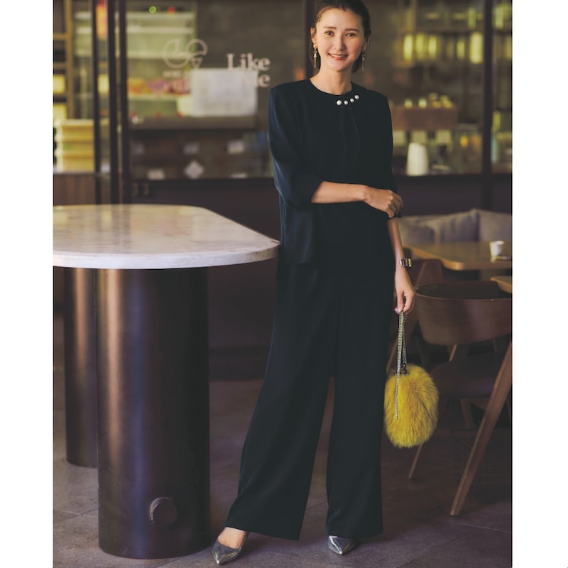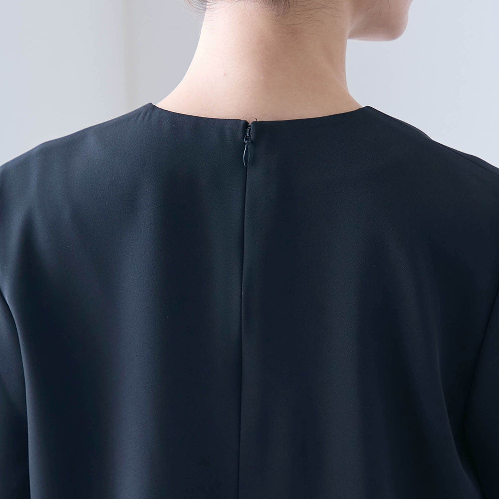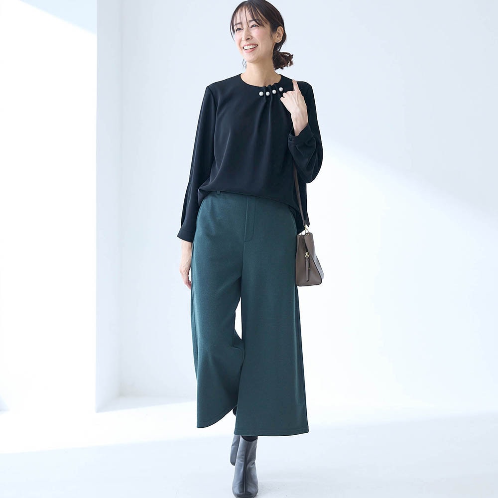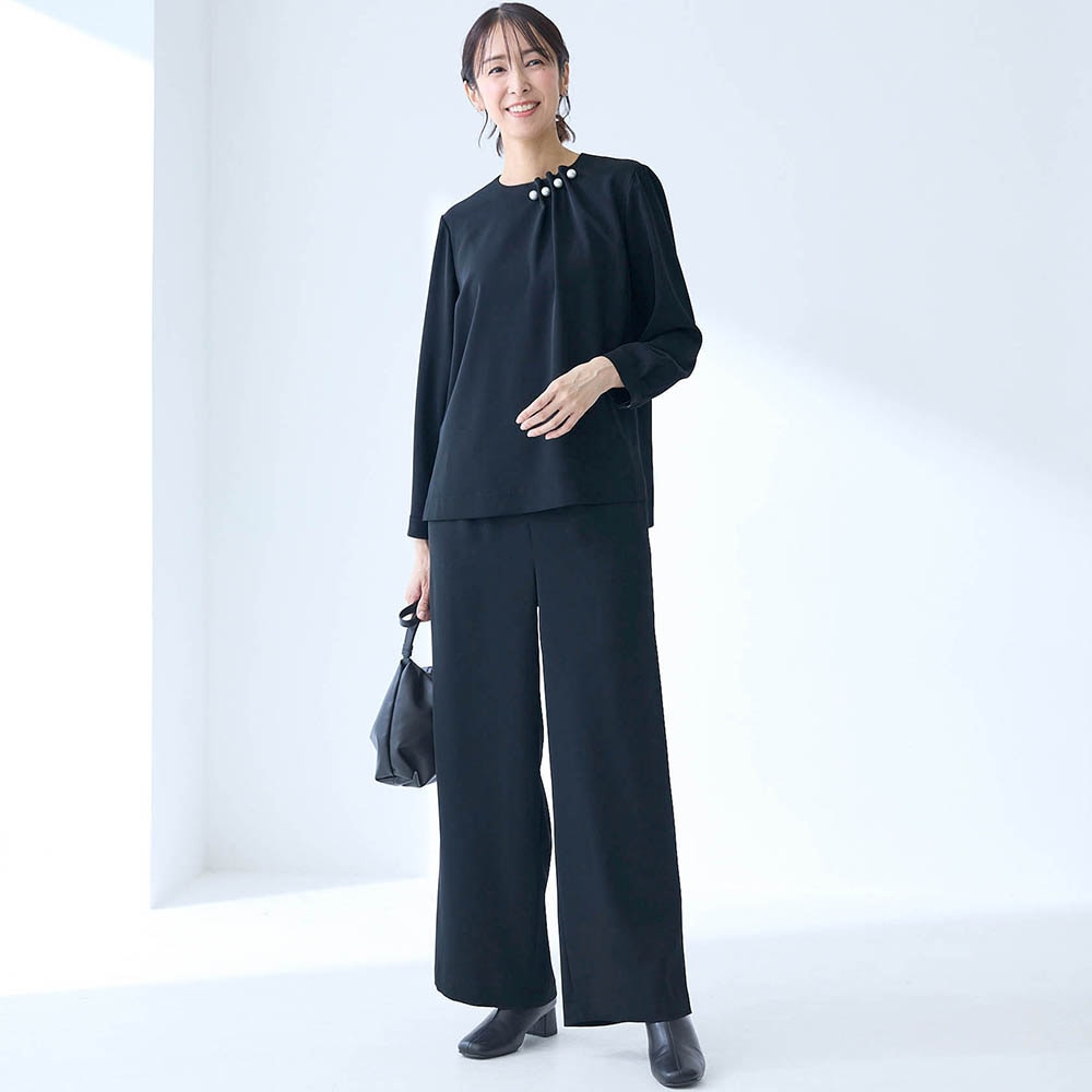 • 襟元にはパール調の大きめボタン付きでアクセサリー無しでもOK