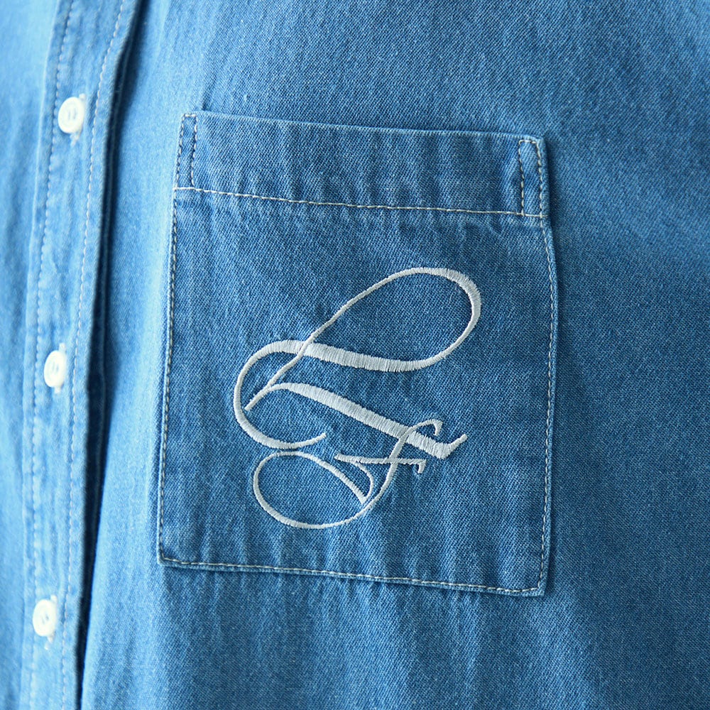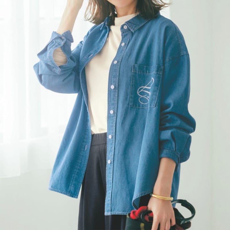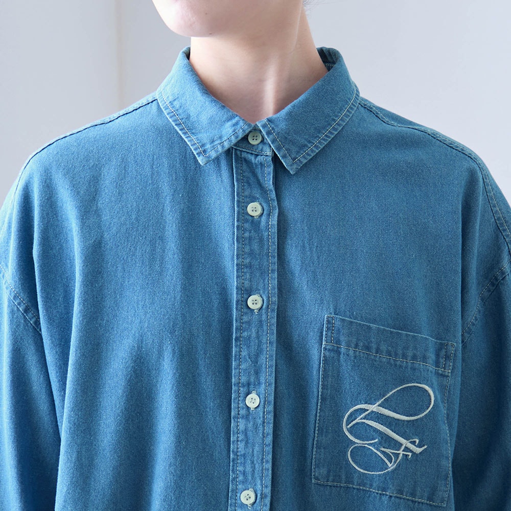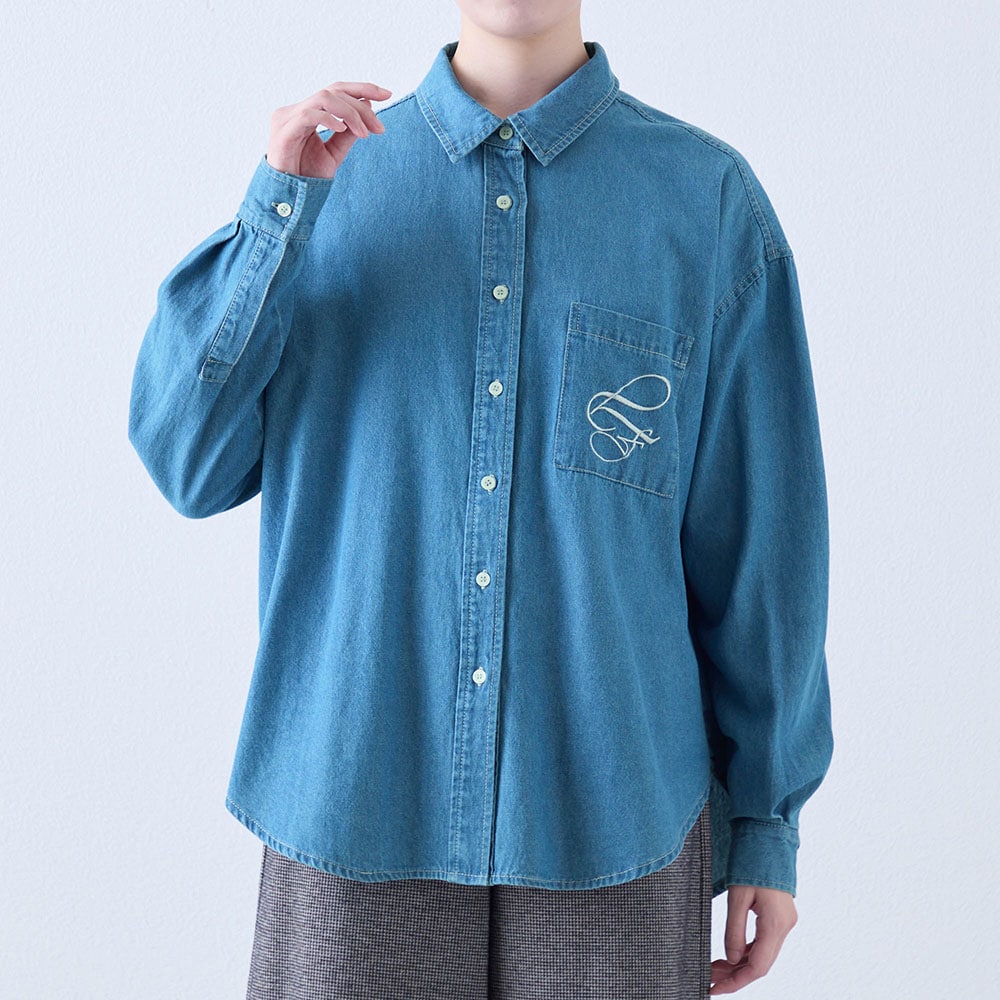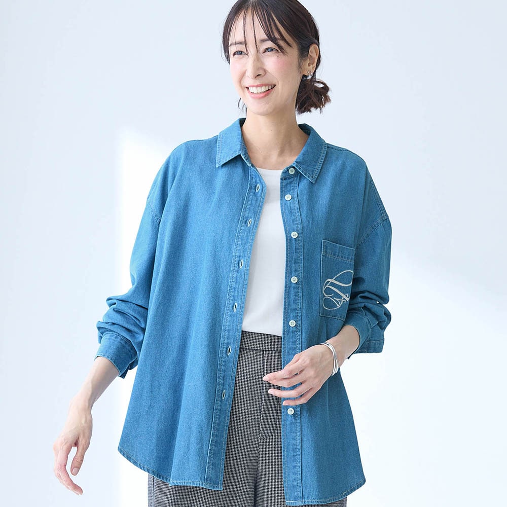重ね着にも使える胸元刺繍入りデニムシャツ