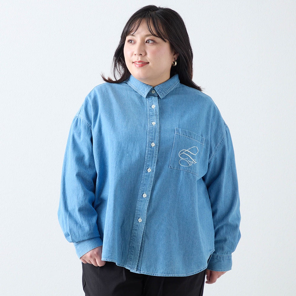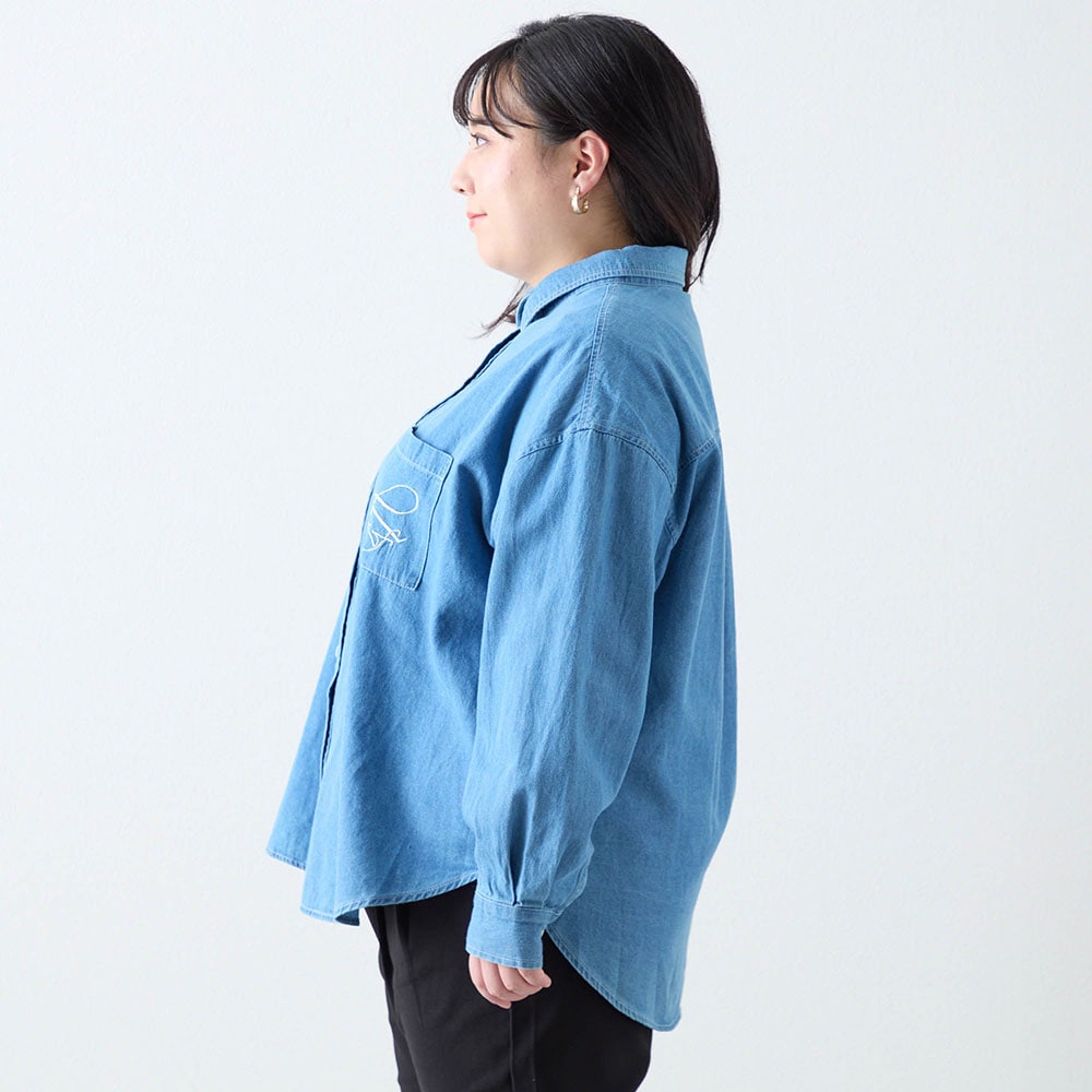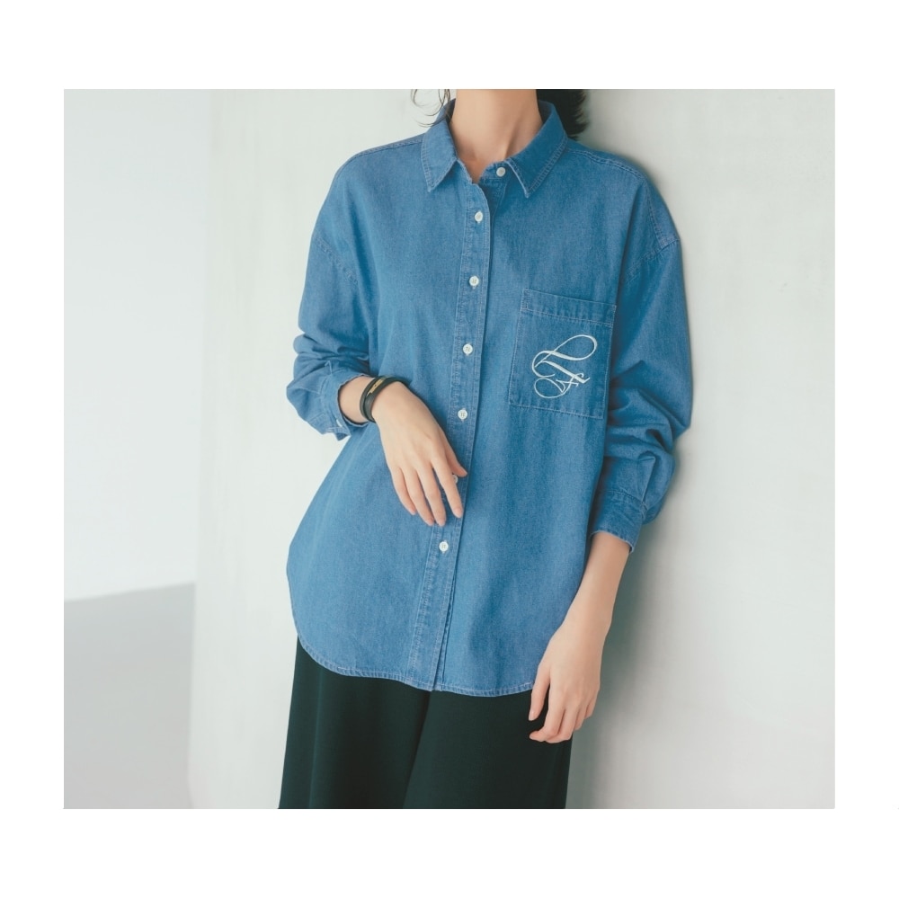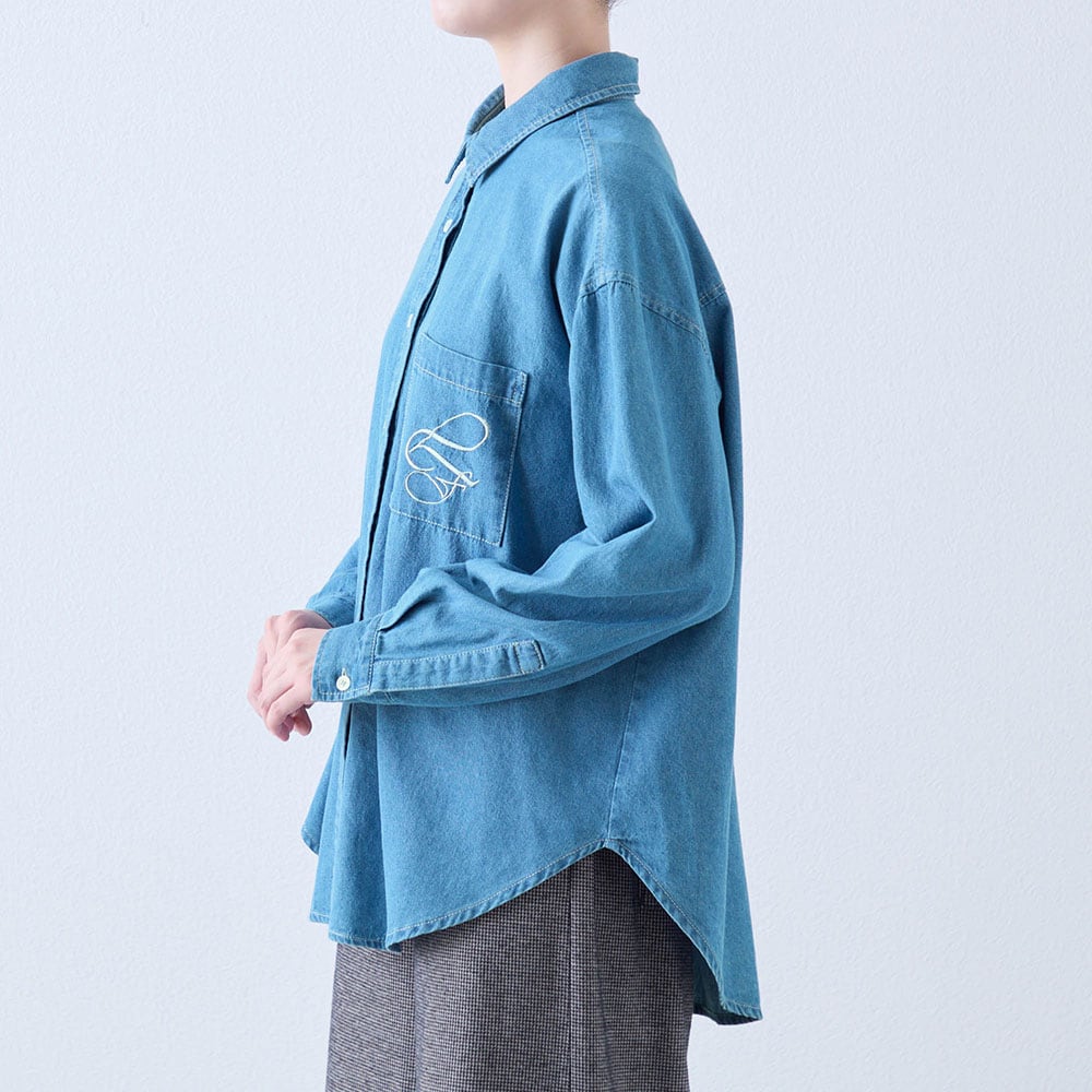 重ね着にも使える胸元刺繍入りデニムシャツ