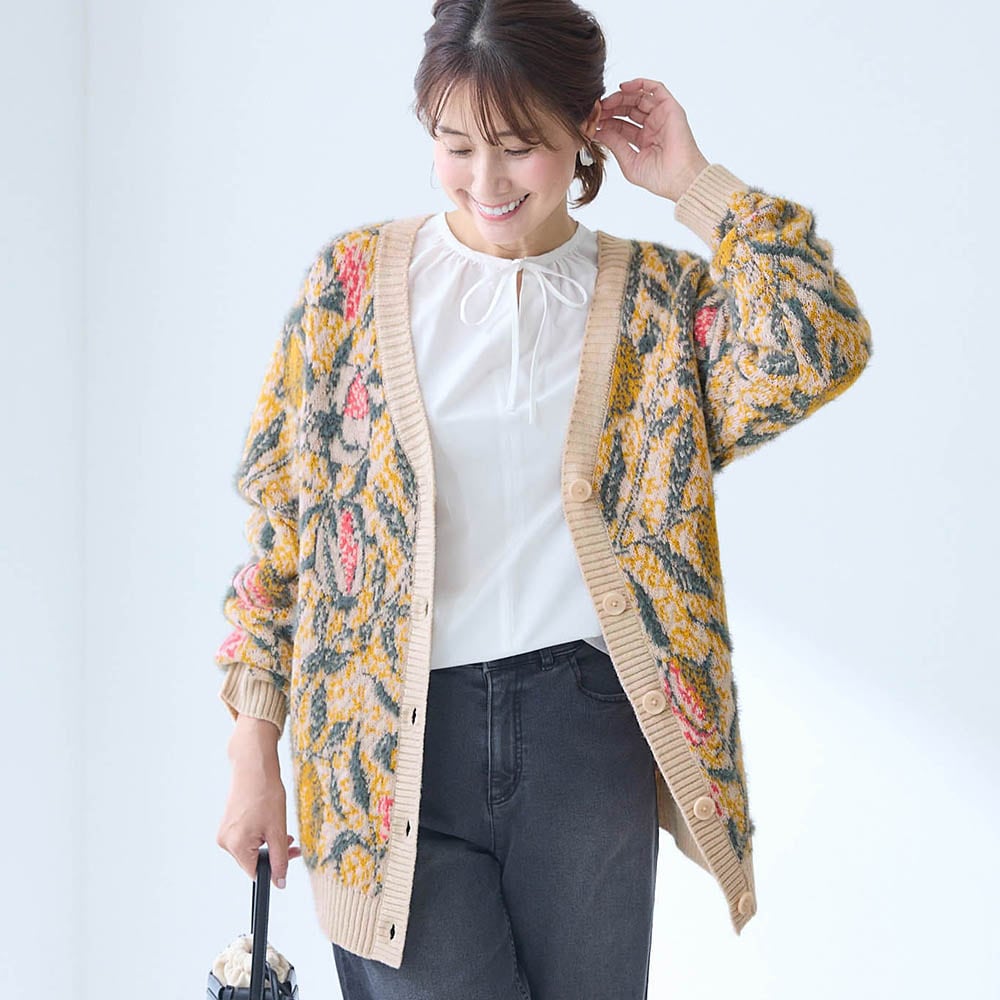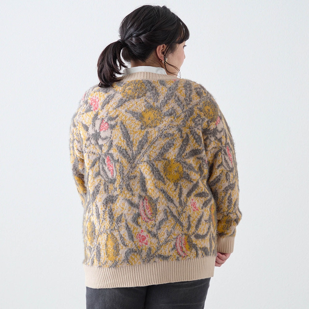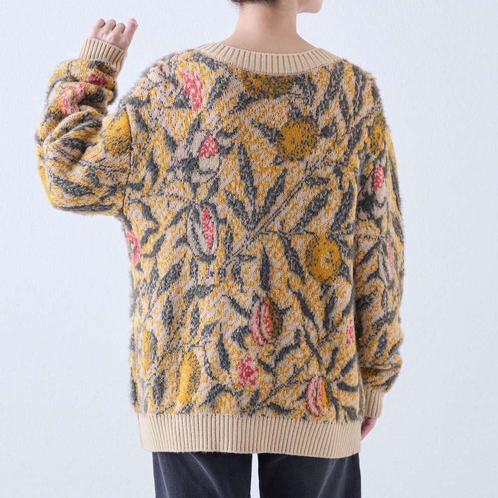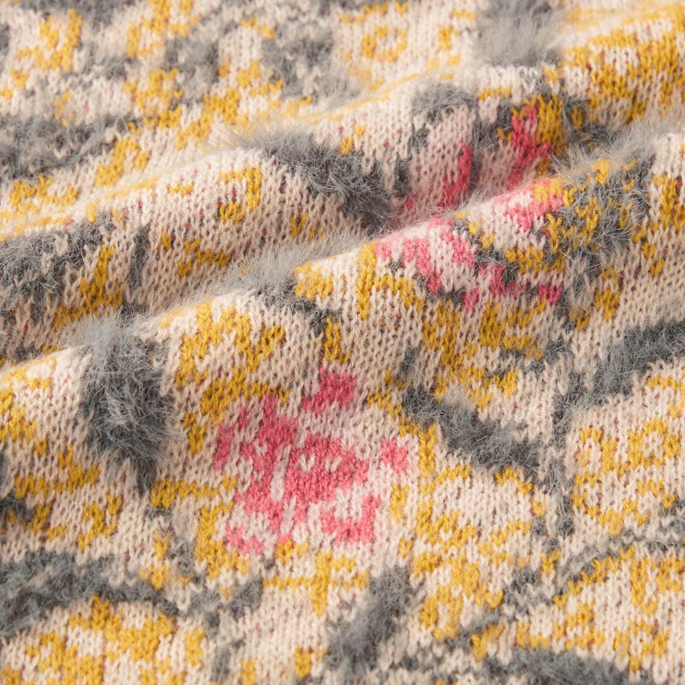 • 色鮮やかなザクロやレモン、オレンジが描かれたシャギー素材のふんわりニット