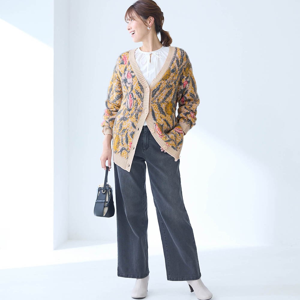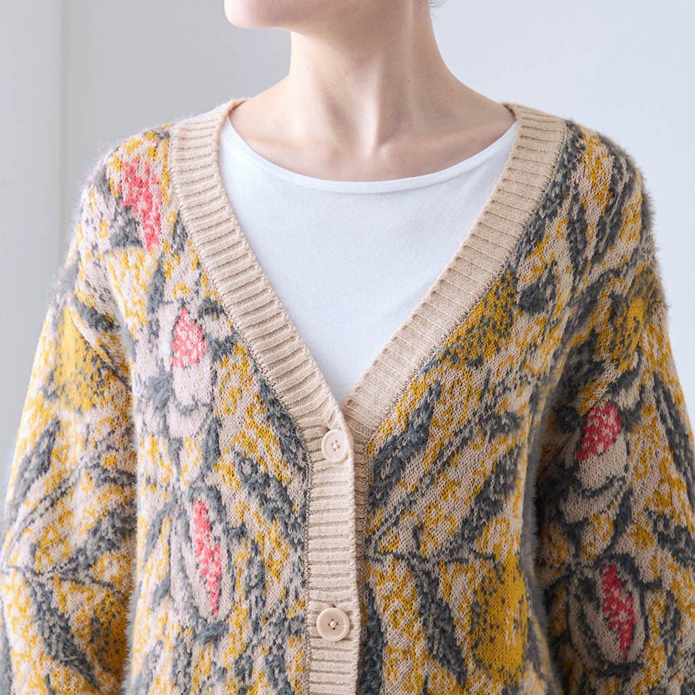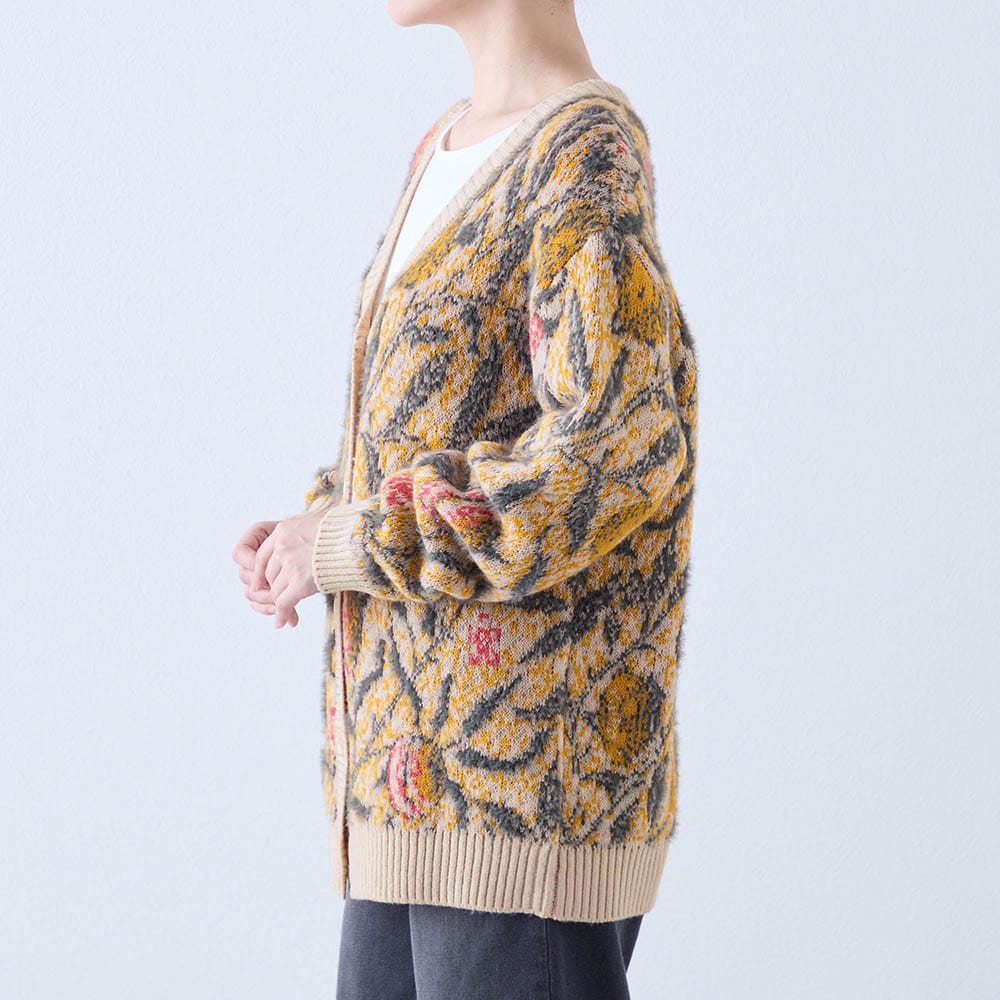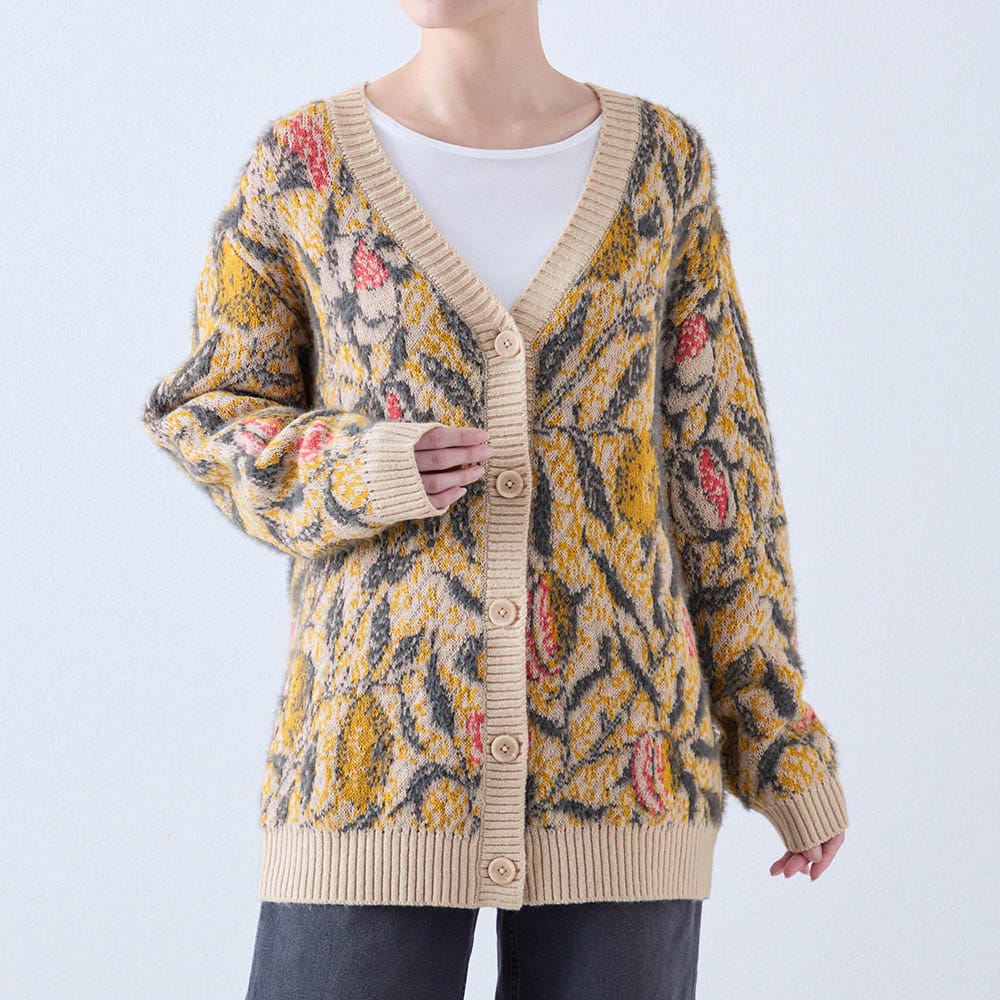 • 色鮮やかなザクロやレモン、オレンジが描かれたシャギー素材のふんわりニット