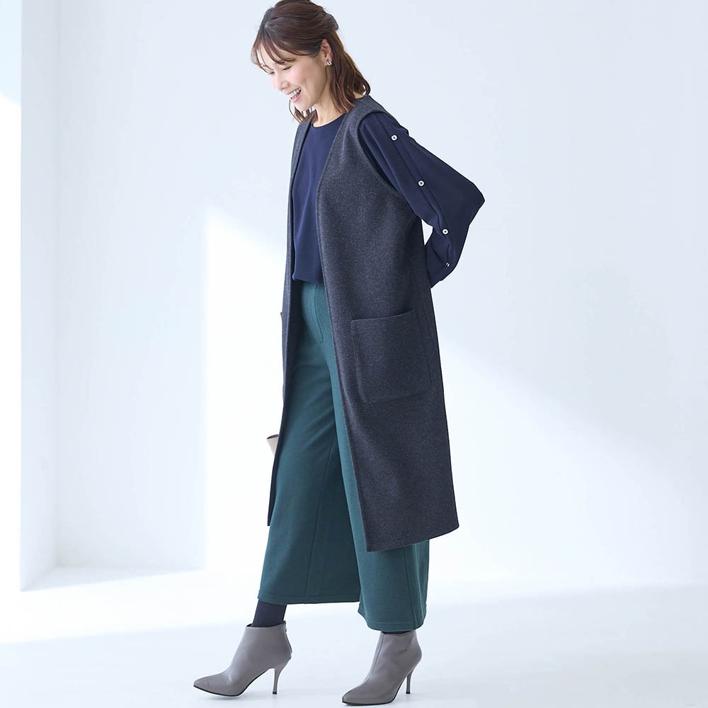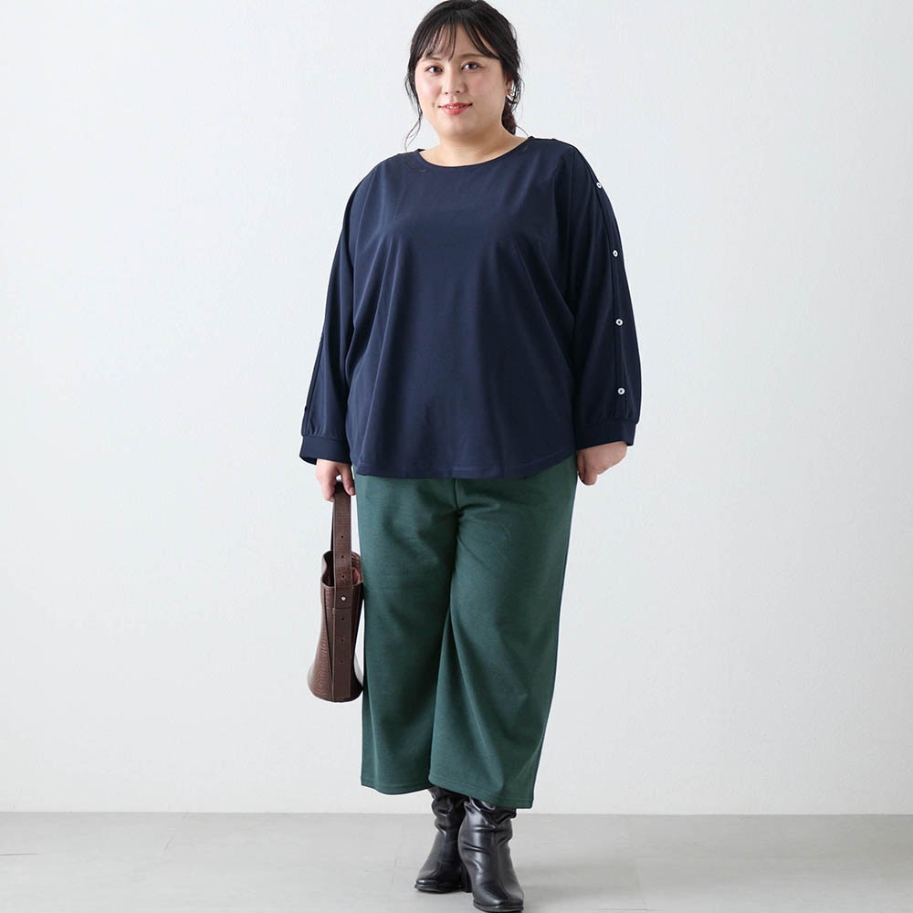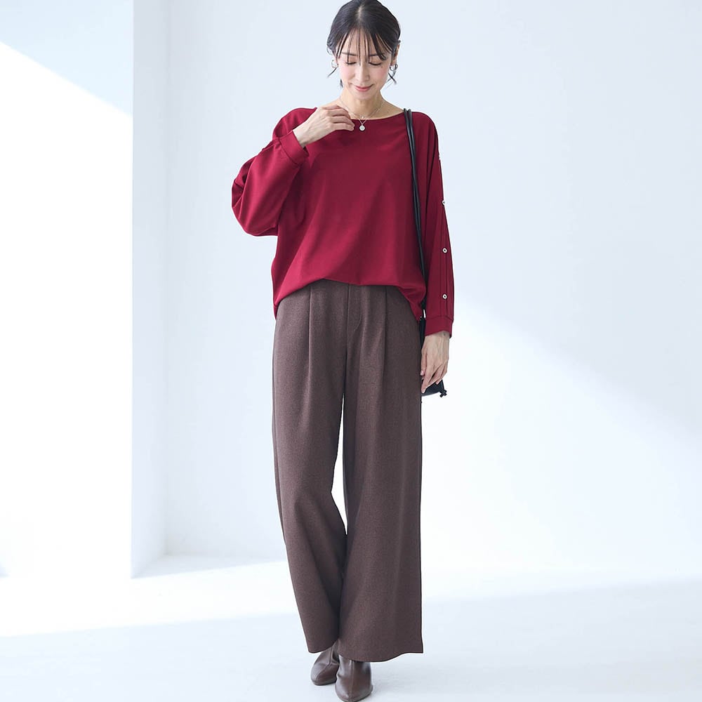• ブラウス見えするカットソー素材は洗濯機で洗えるのもうれしいポイント
