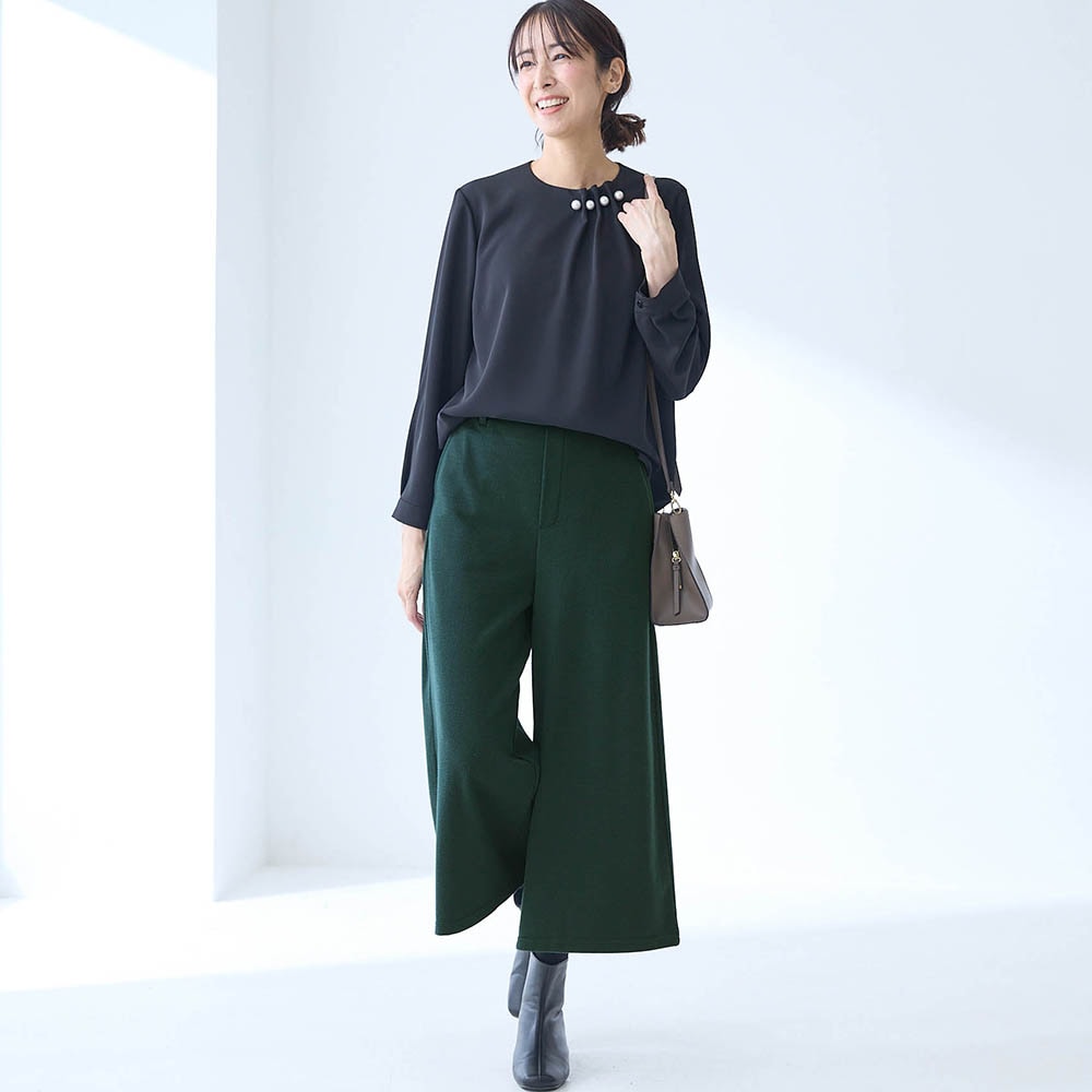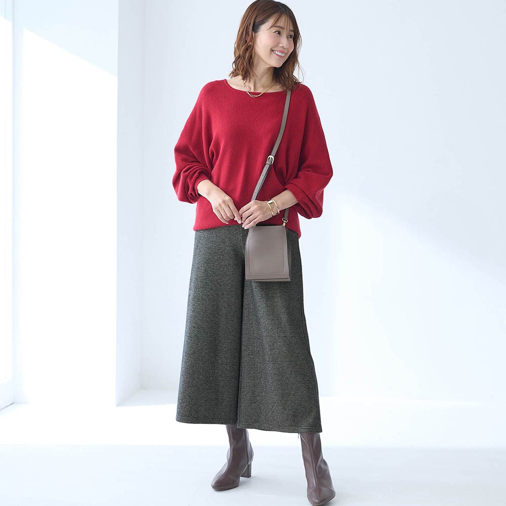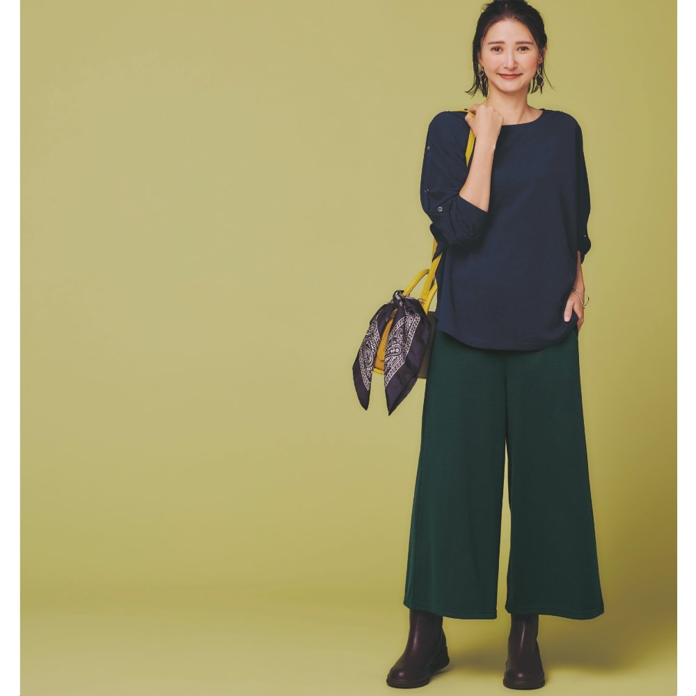 • 肌あたりやわらかな綿混のウールライクカットソー素材