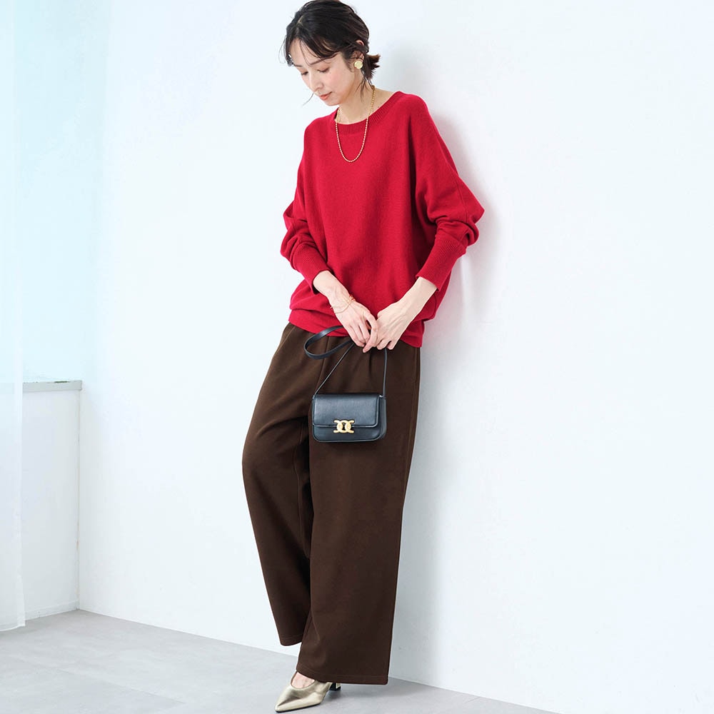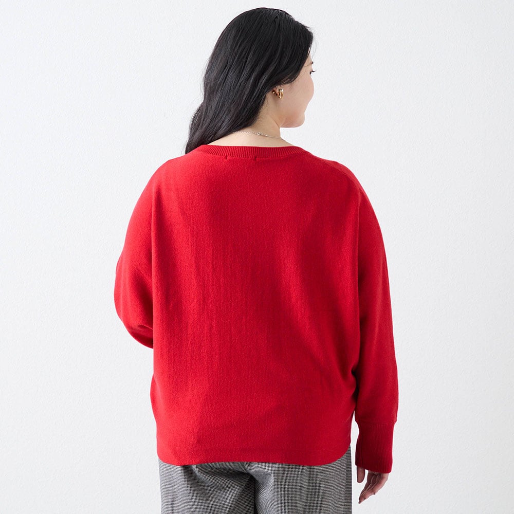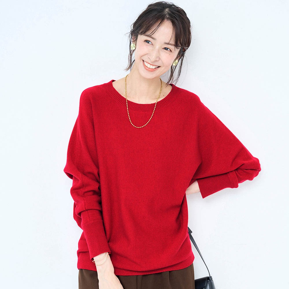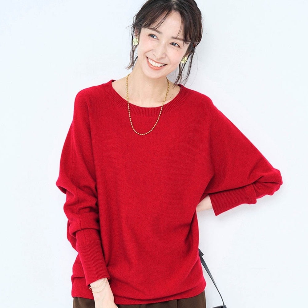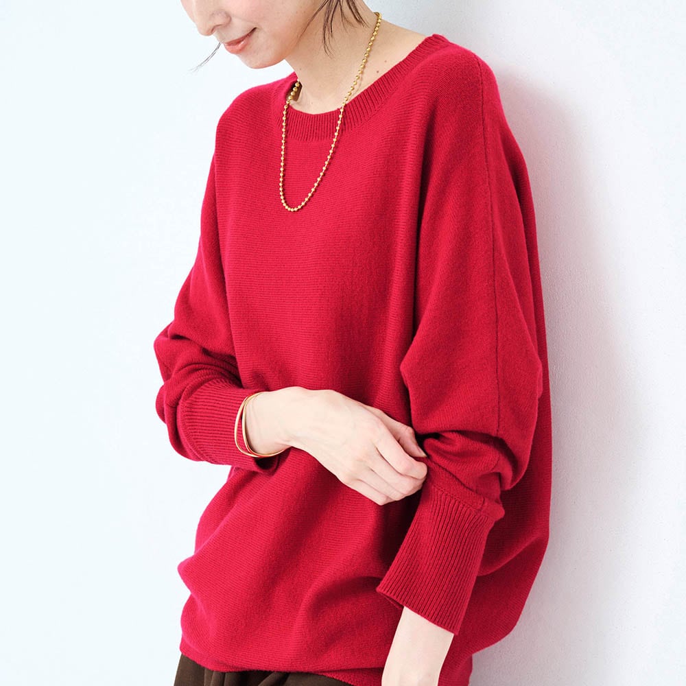 赤のセーターが欲しくて購入。もっと濃い赤が好みだが首元の開き具合や袖口や裾の仕様がスッキリして気に入った。コートに合わせてタートルネックやシャツを重ね着して着たい。