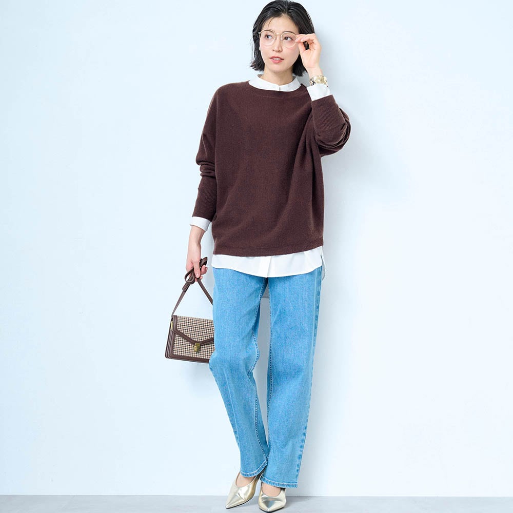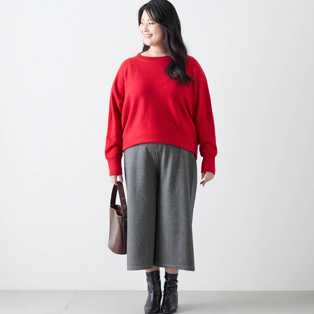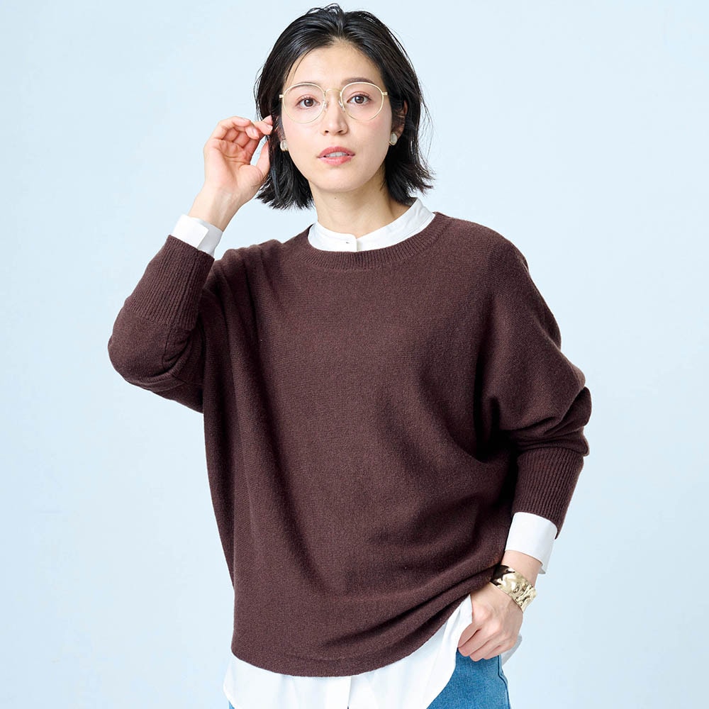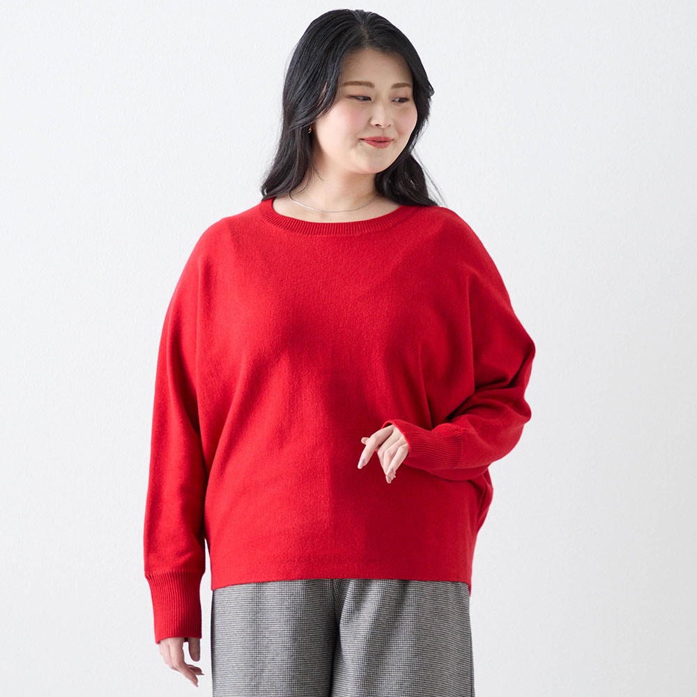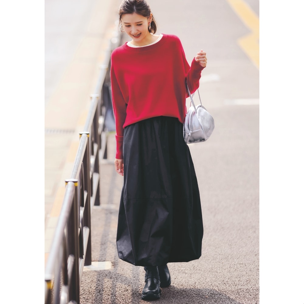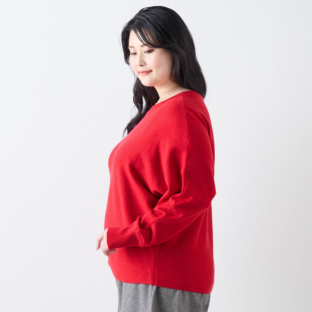 赤のセーターが欲しくて購入。もっと濃い赤が好みだが首元の開き具合や袖口や裾の仕様がスッキリして気に入った。コートに合わせてタートルネックやシャツを重ね着して着たい。