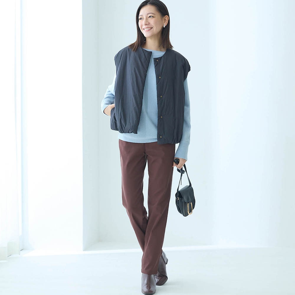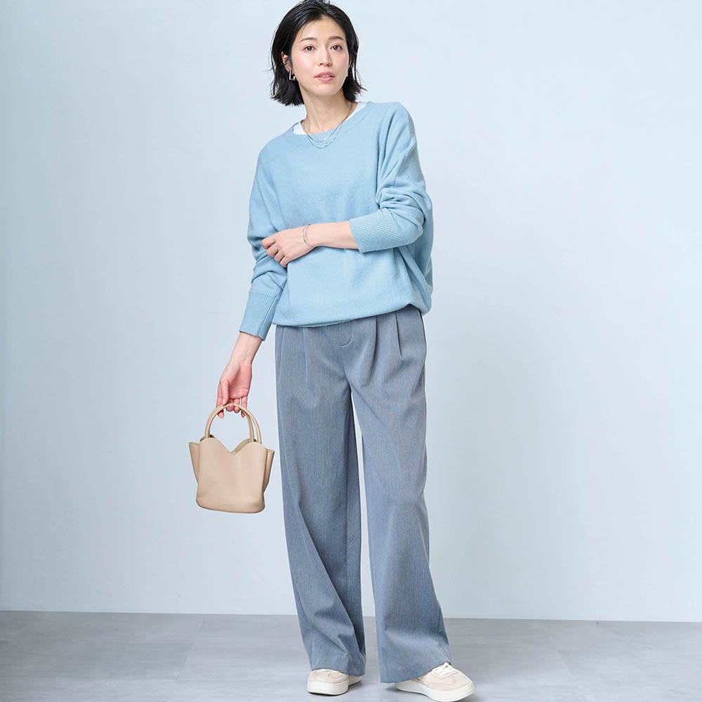 形が気に入っています。シンプルなので、アクセサリーや中に合わせるもので楽しんでいます。