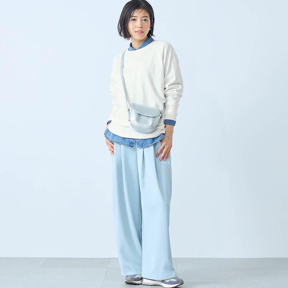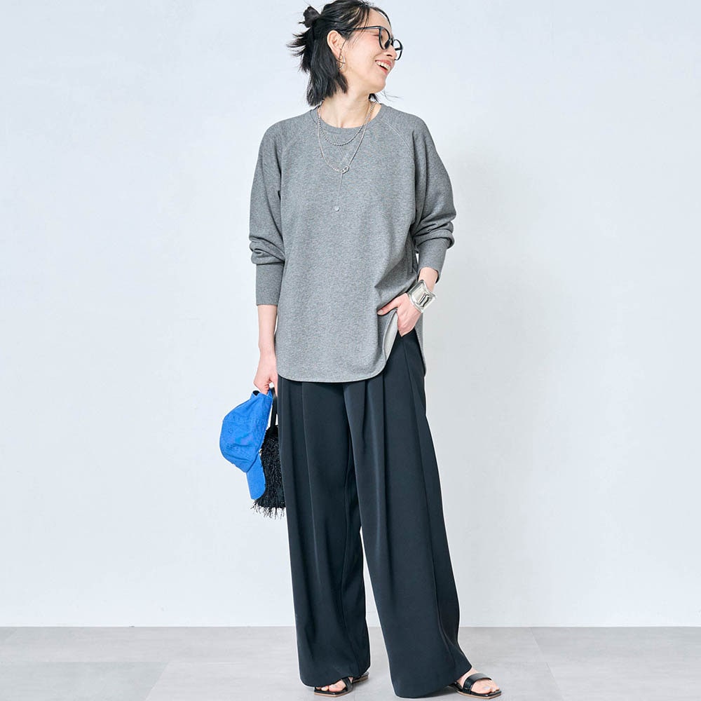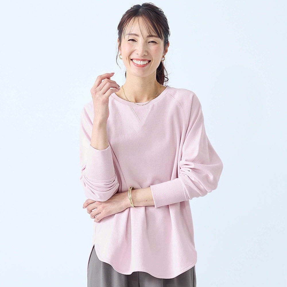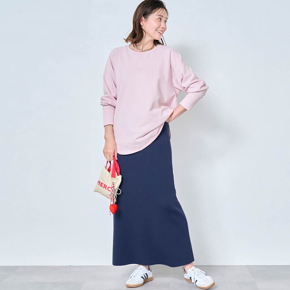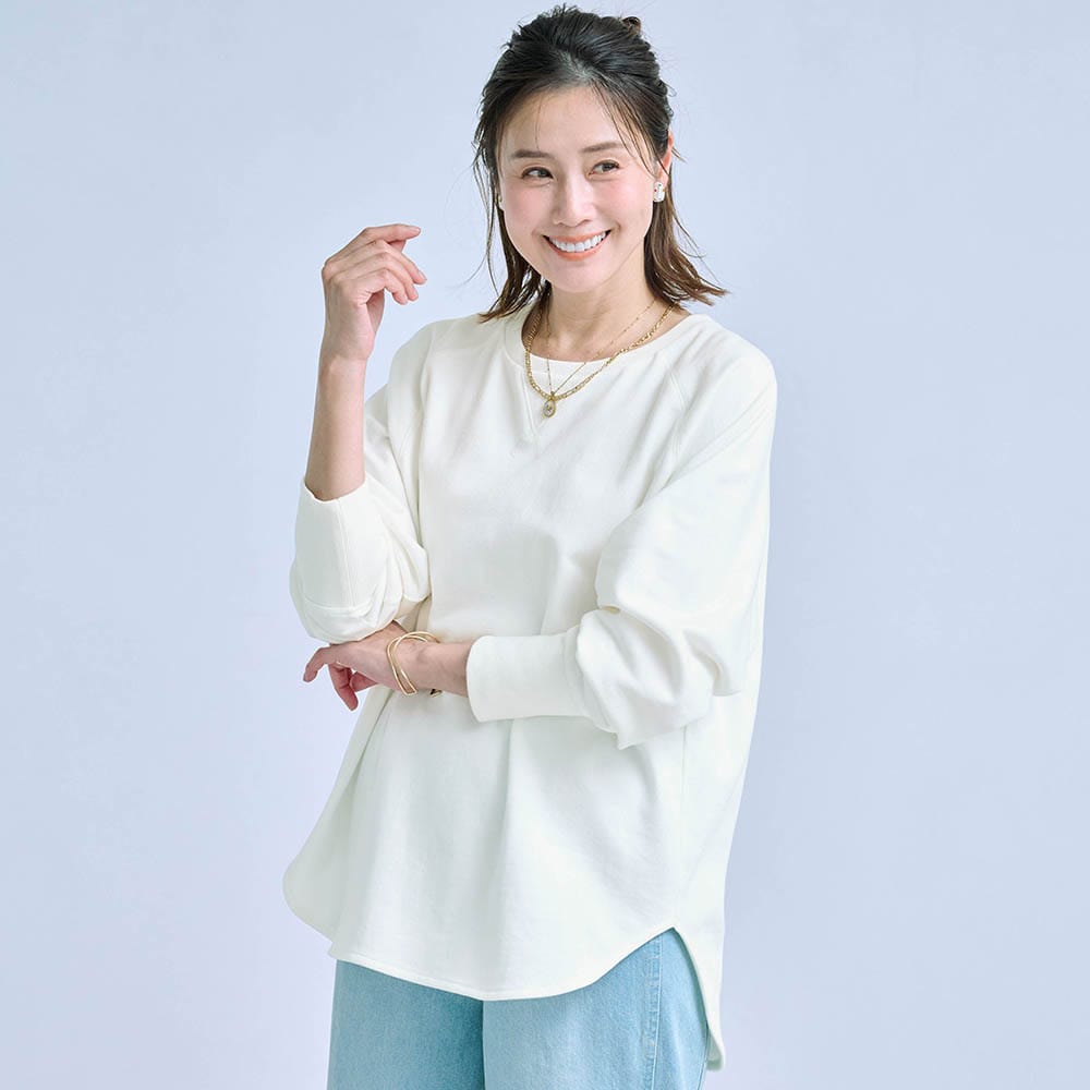 しっかりした綿生地ですが、スウェットとしては少し薄手でした。でも1枚で着てもインナーっぽくならず、いろんなボトムスと合わせられます。