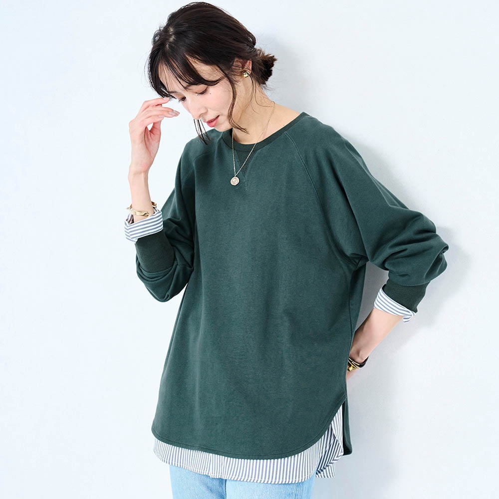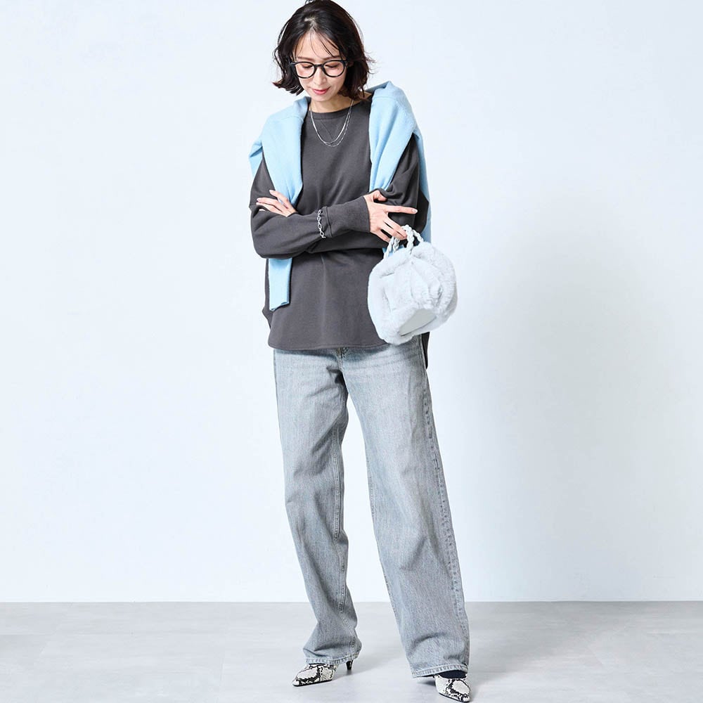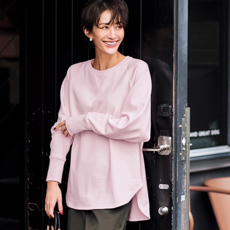 きれいな色とシンプルなデザインが気に入り購入しました。重ね着も決まりやすく、そのままでもいいし、ぼてぼてしなくて気に入ってます。