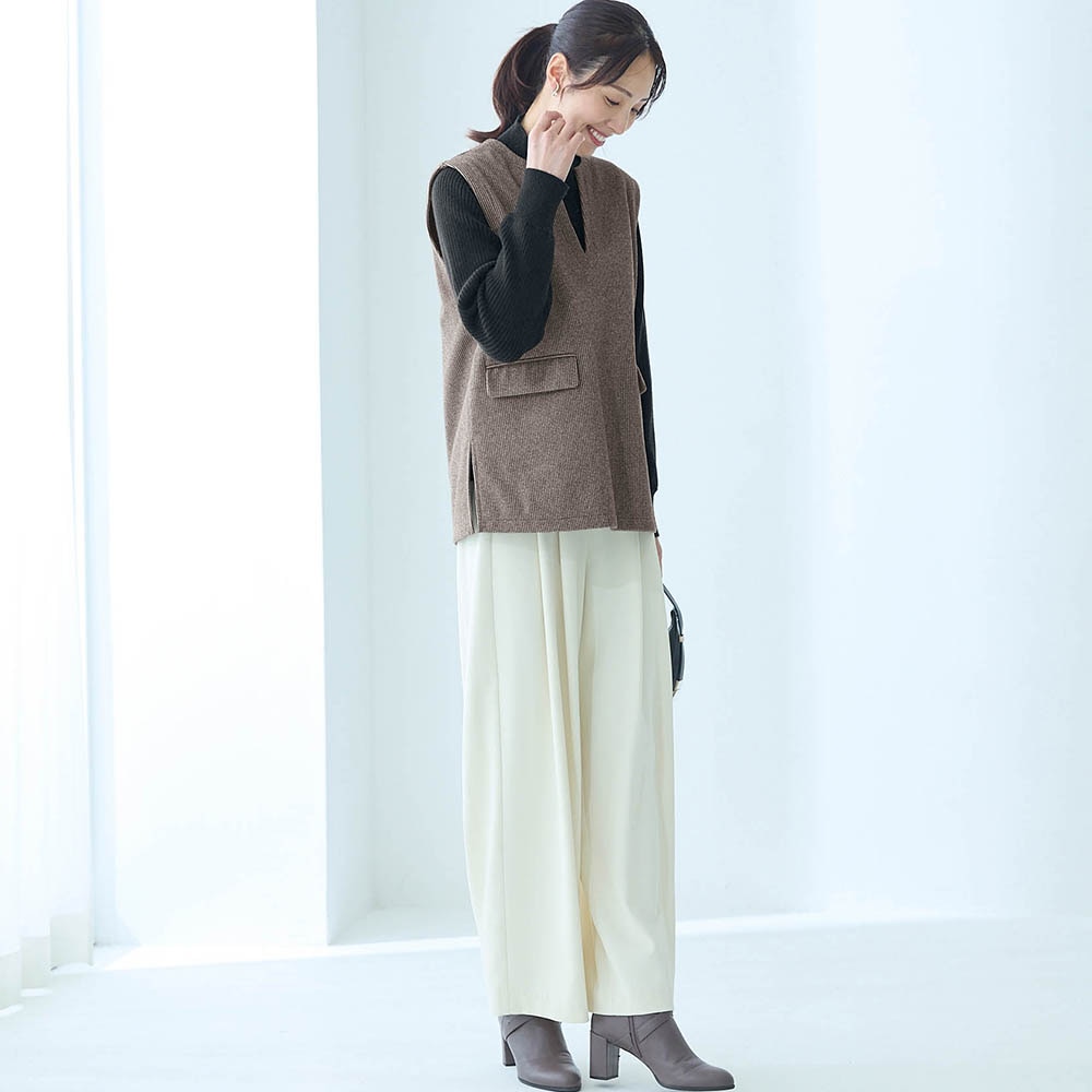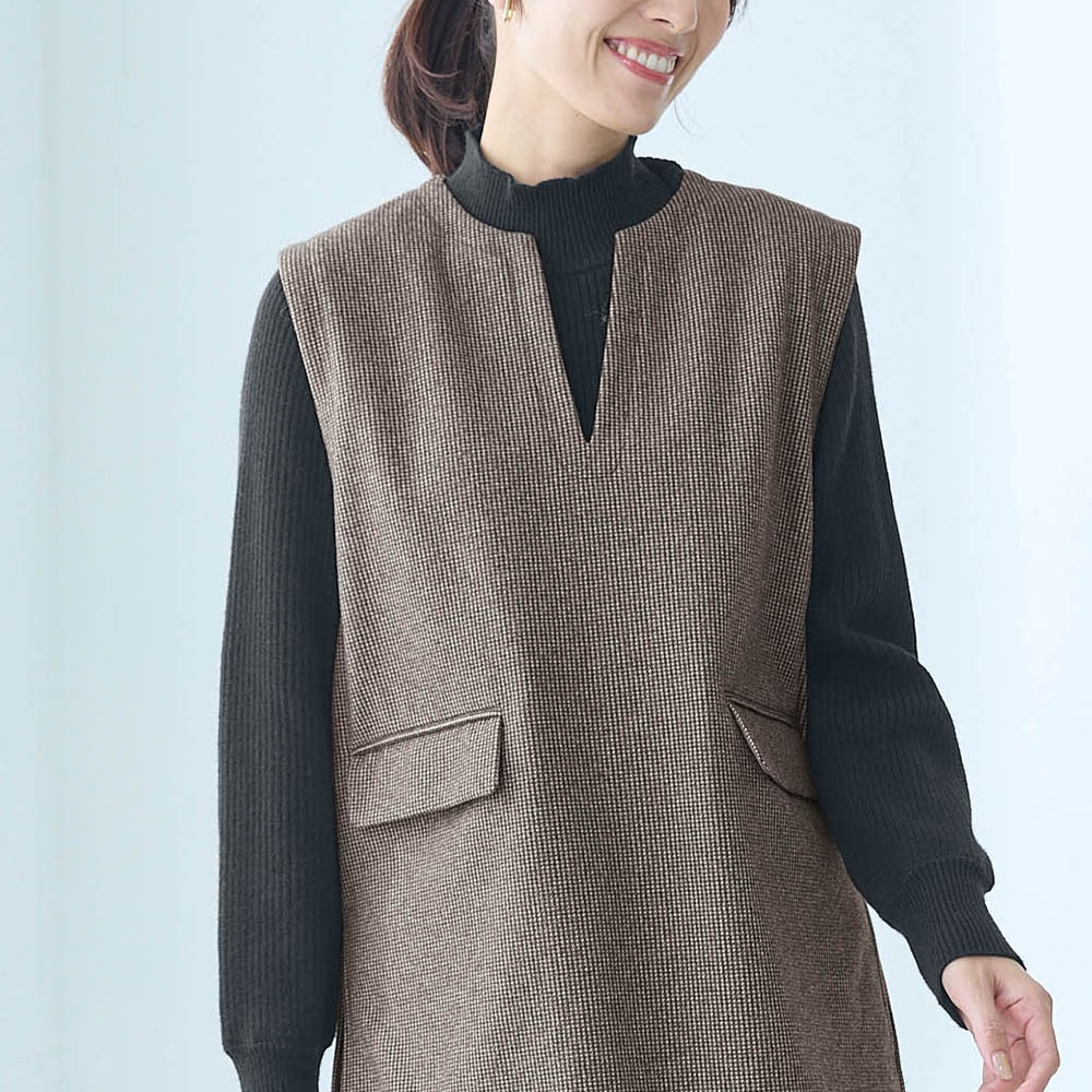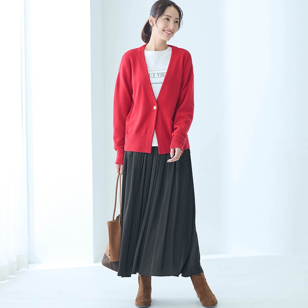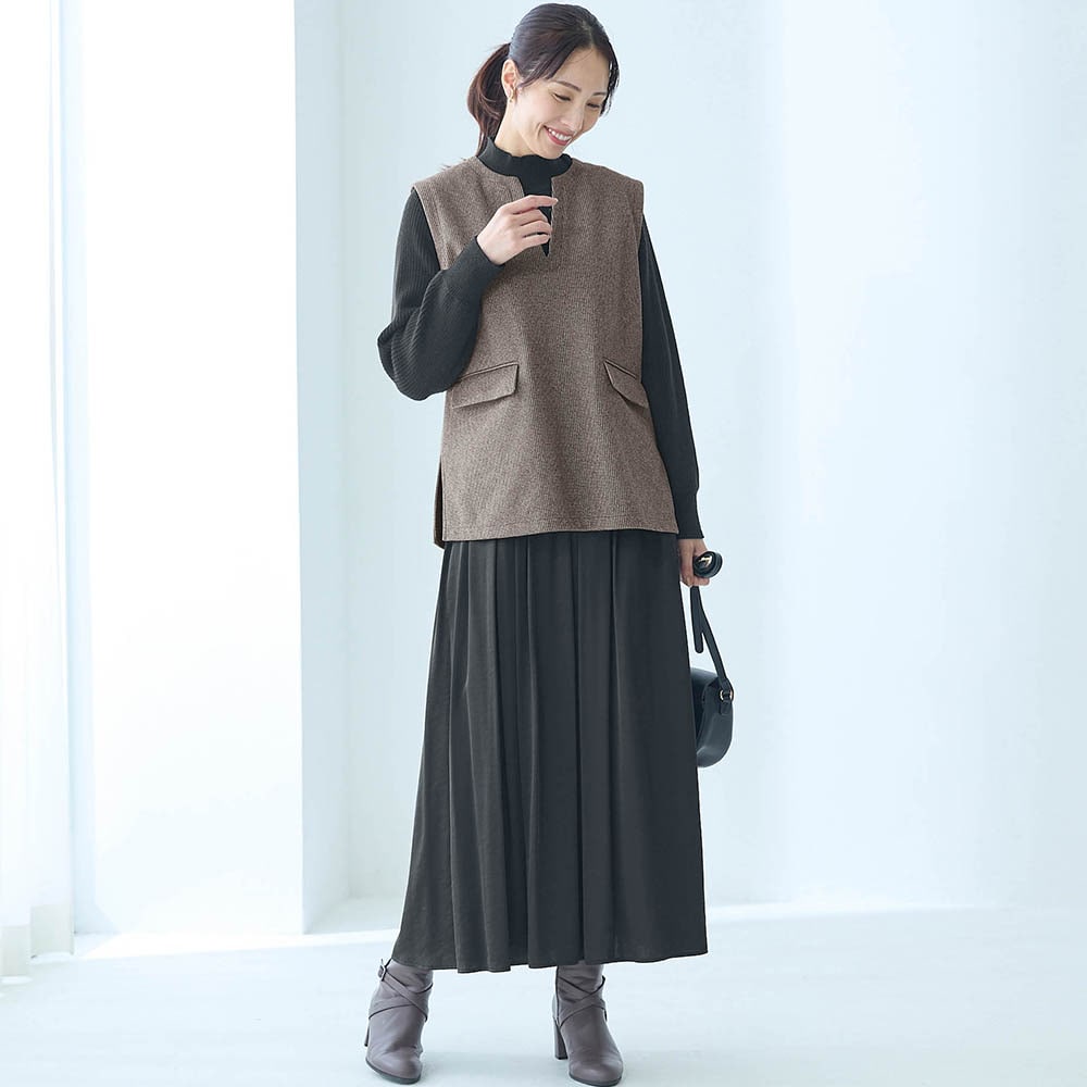 この3点セットは、毎年買っているアイテムなのですが、今までのスカートとは全く素材が違っていて驚きました。ちょっと苦手なスカート生地です。他のベスト&ニットには満足しています。