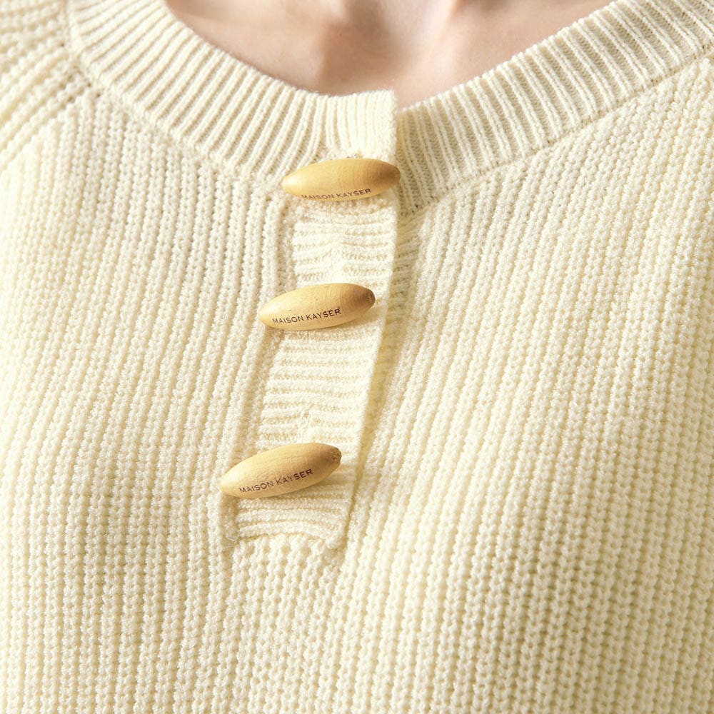 • 焼き印のようなプリントを施したバケット風の飾りボタン