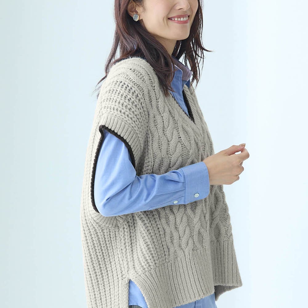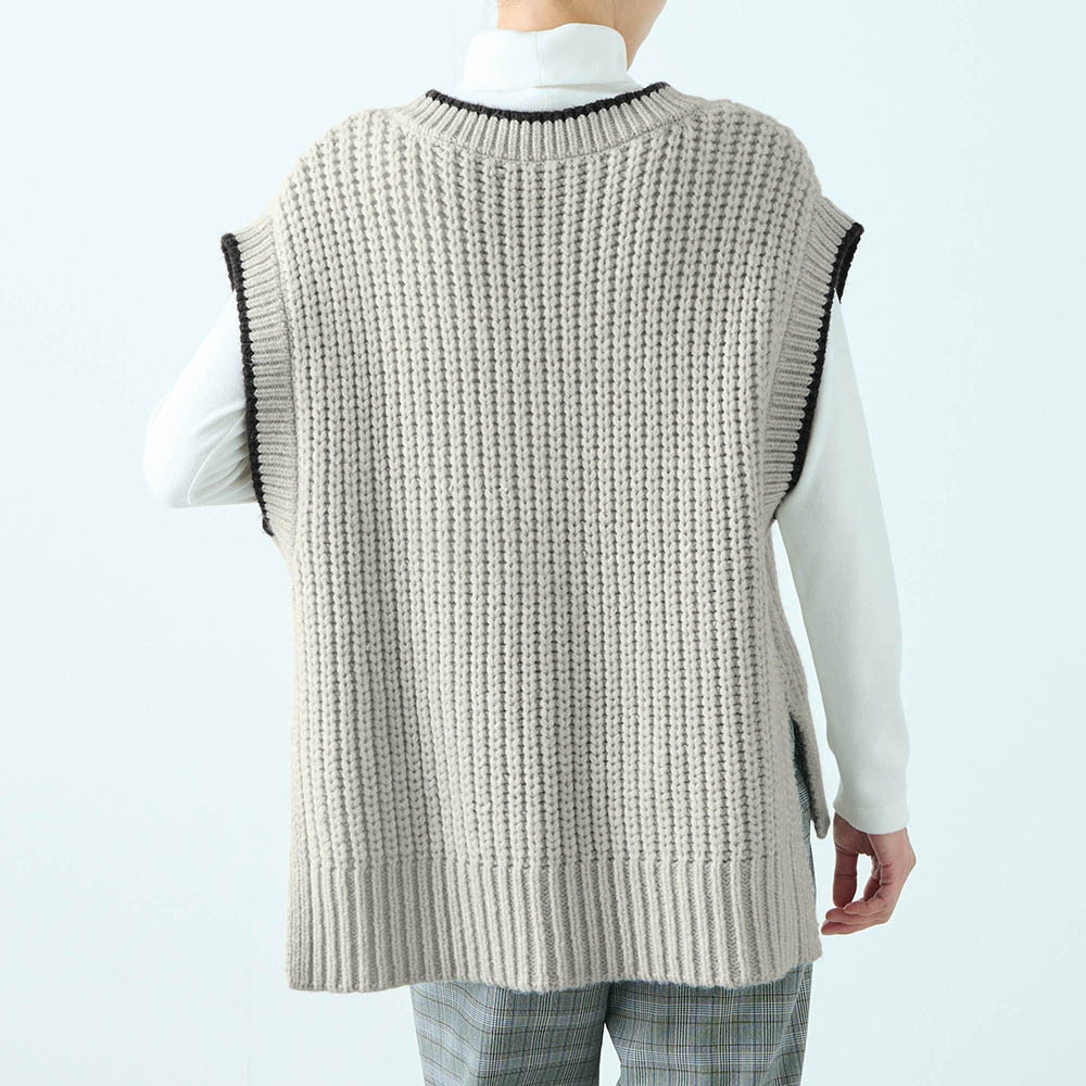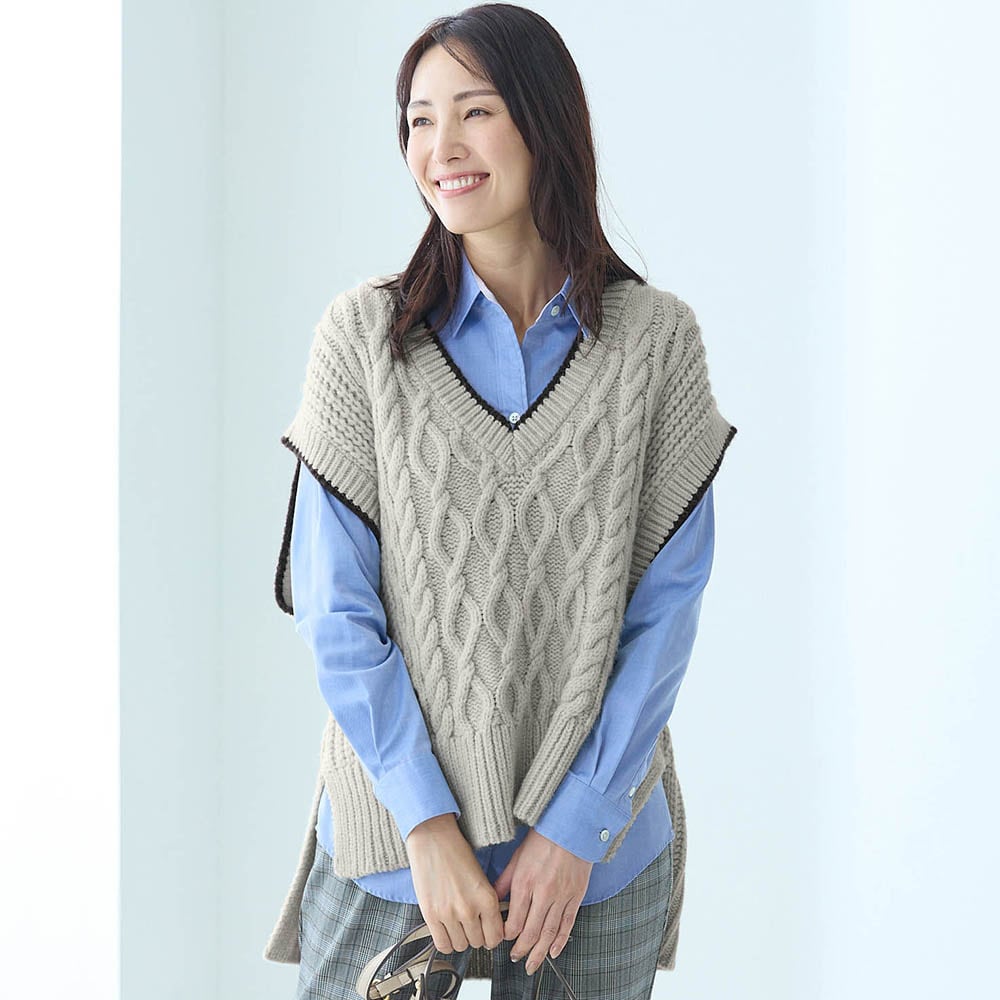 もっと目が詰まった感じかと思ったら、すごく手編みな感じでほっこり感と扱いづらいなと感じたので、返品させていただきます…デザインはいいと思うのですが。ザブザブ洗えるイージーなベスト希望です!